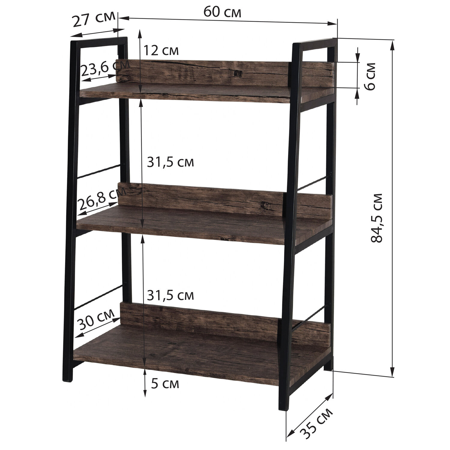 Компактный трёхполочный стеллаж в стиле лофт дополнит любую рабочую зону в офисе и дома. Он отличается актуальным минималистичным дизайном, высококачественными материалами и надежностью.
