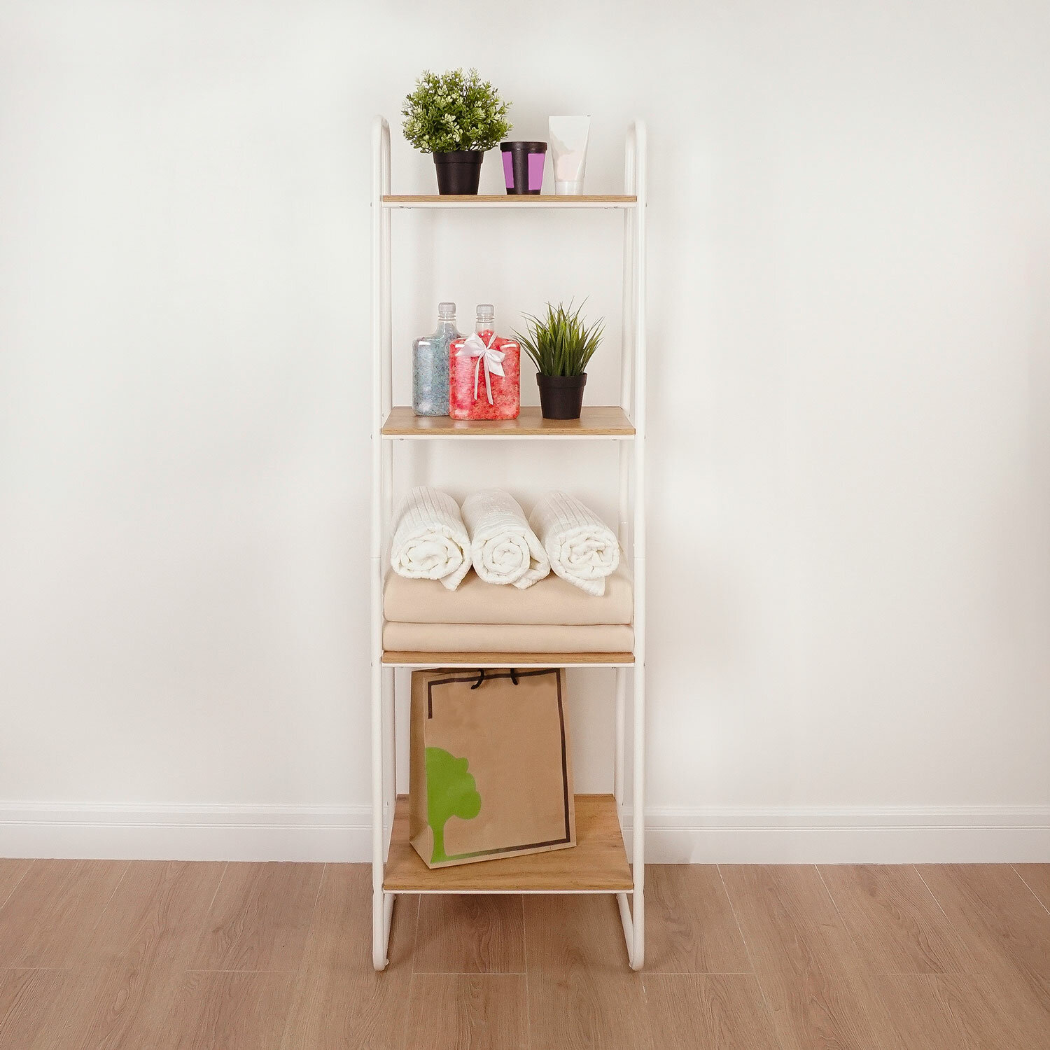 Стеллаж на металлокаркасе «Скандинавия-14», 450х385х1470 мм, 4 полки ЛДСП, белый/дуб, CТCП14 Б