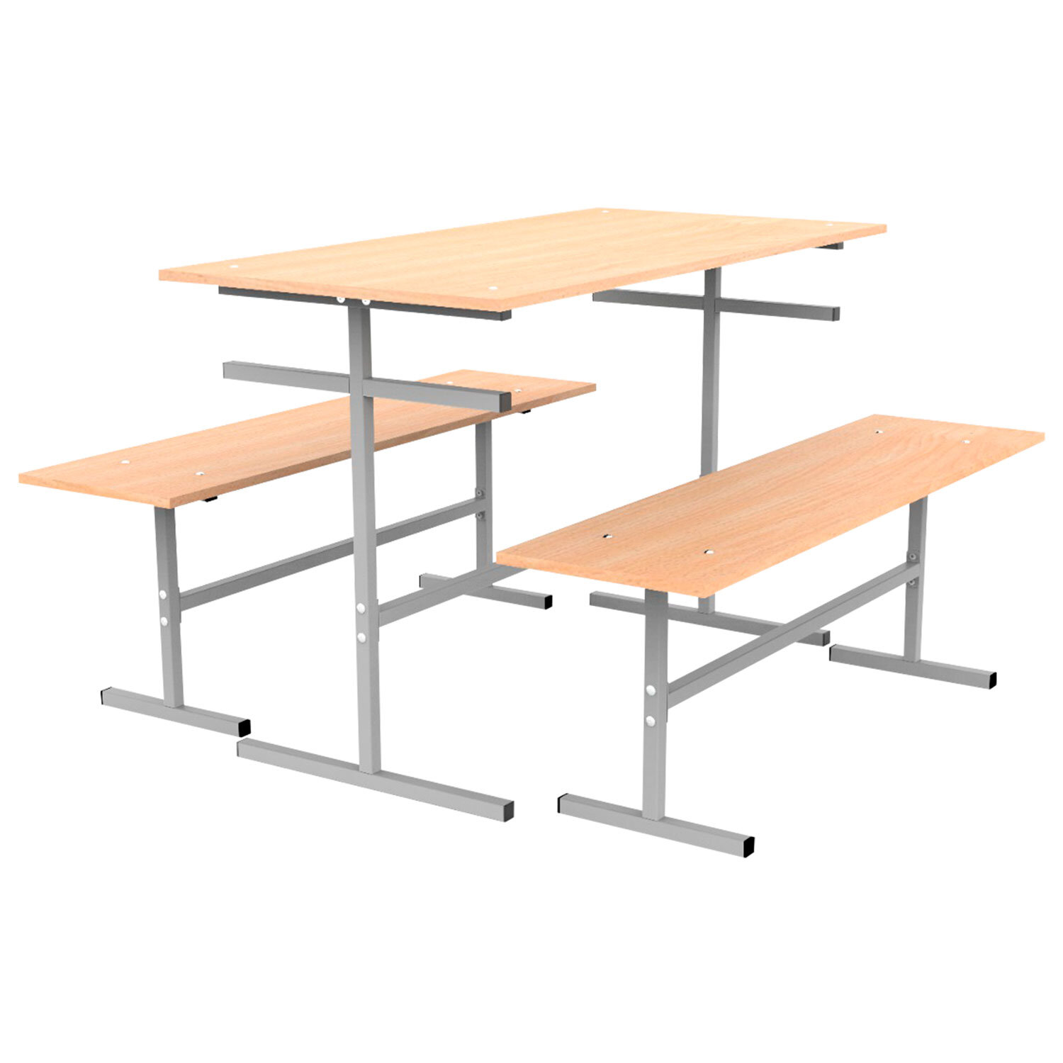 Стол для столовых «ССТ 1200» удобен, практичен, неприхотлив в обслуживании, идеально подходит для школ и других заведений. На каркасе предусмотрены кронштейны для компактного размещения скамьи под крышкой стола. Столешница ЛДСП.