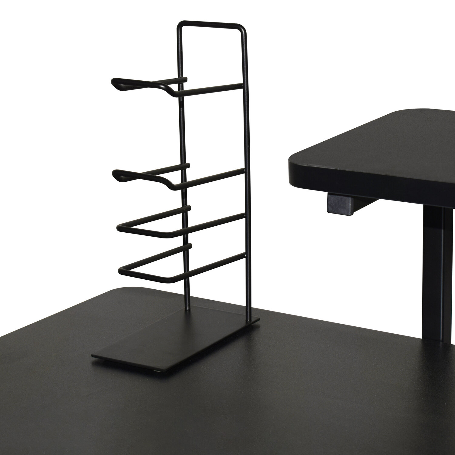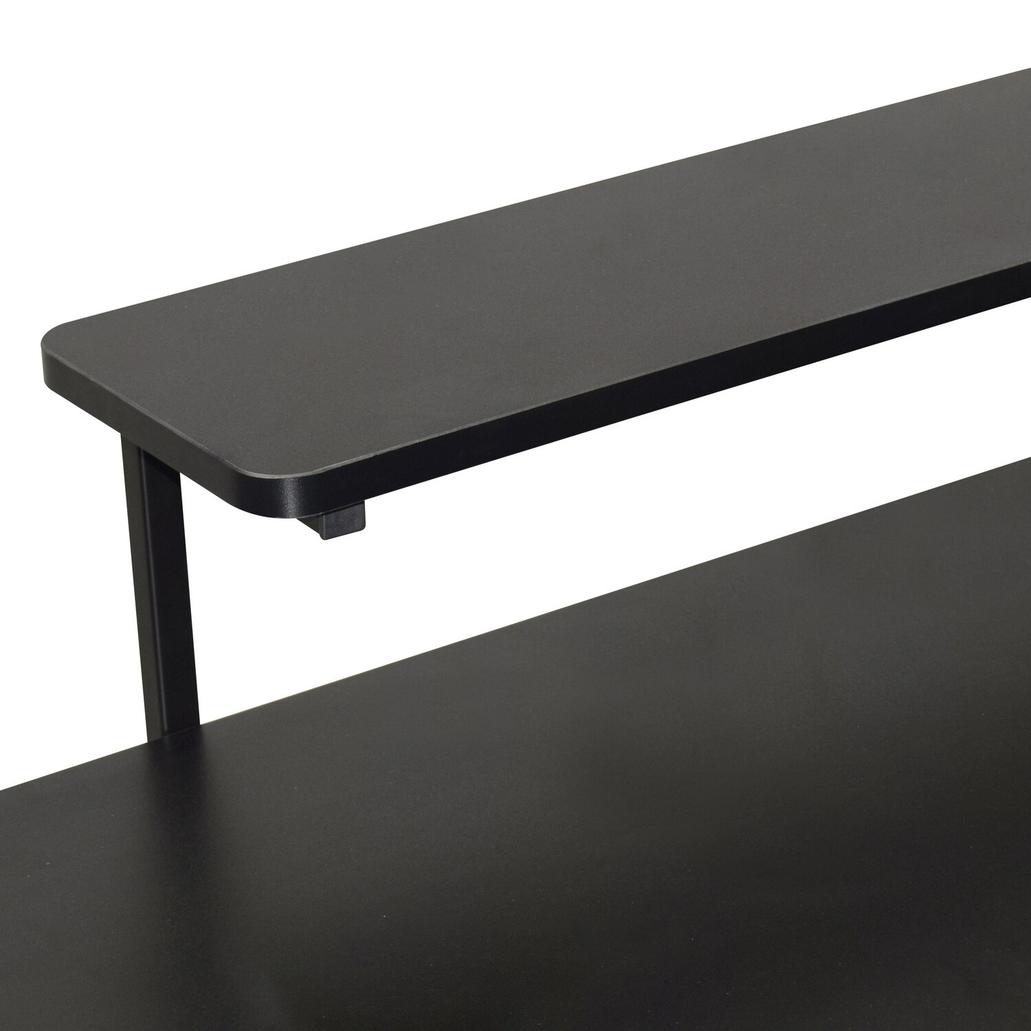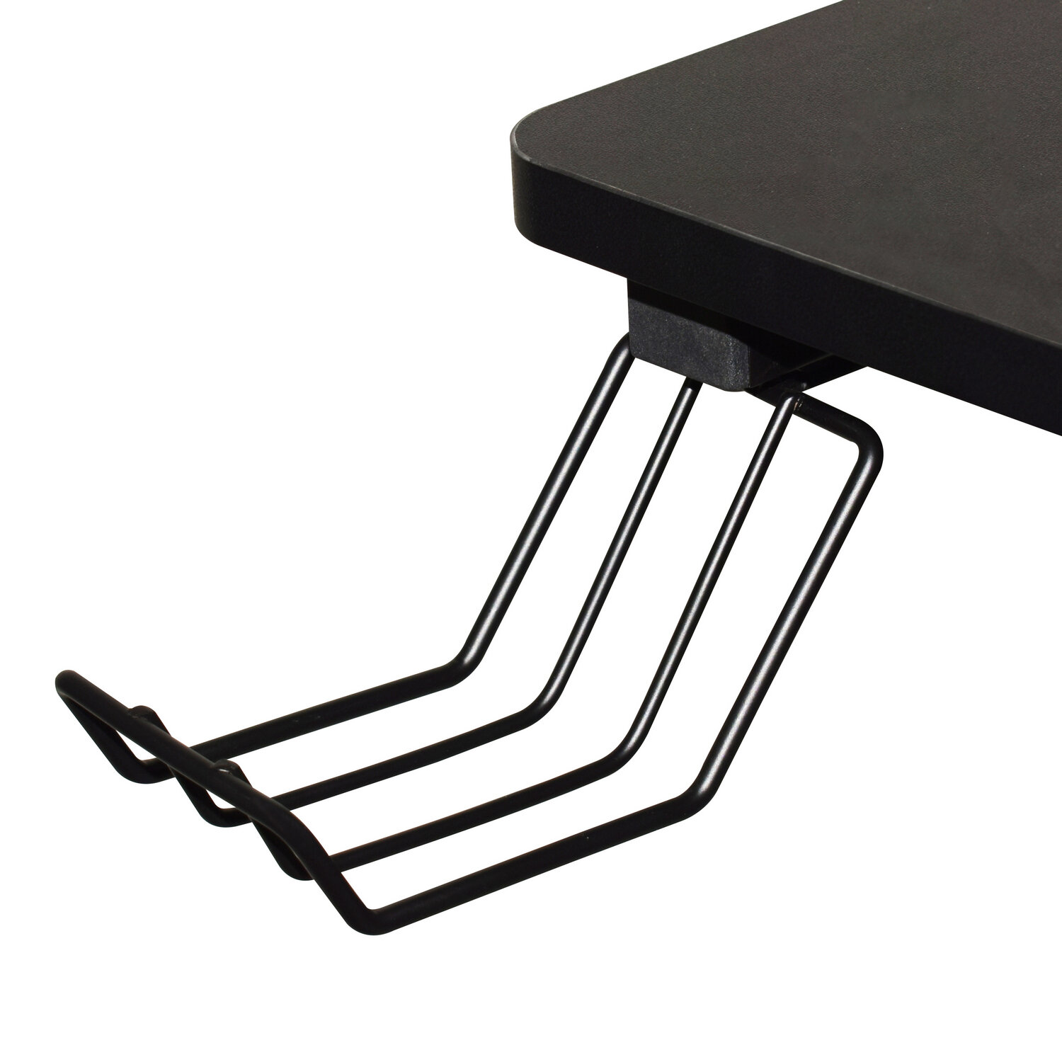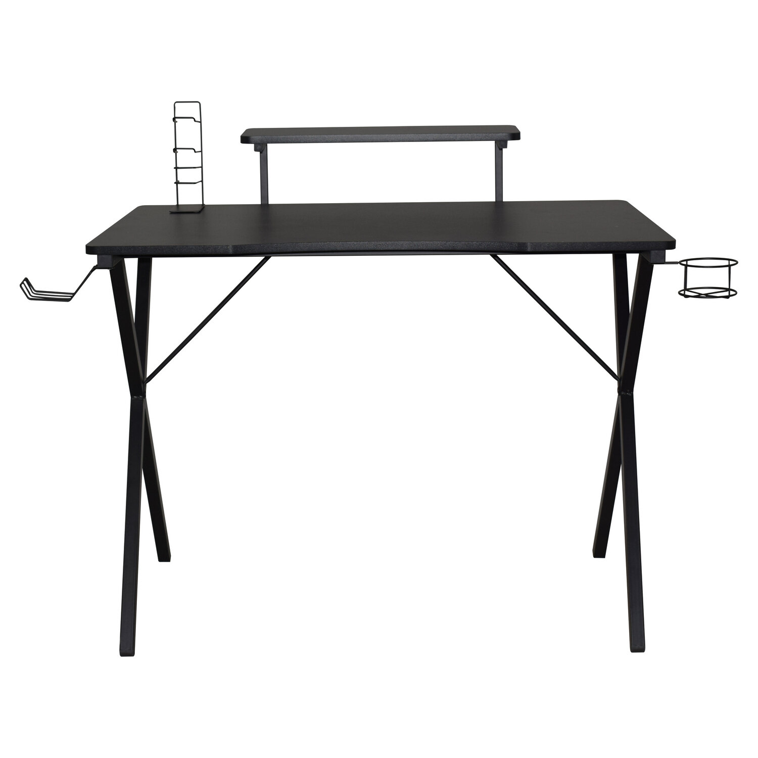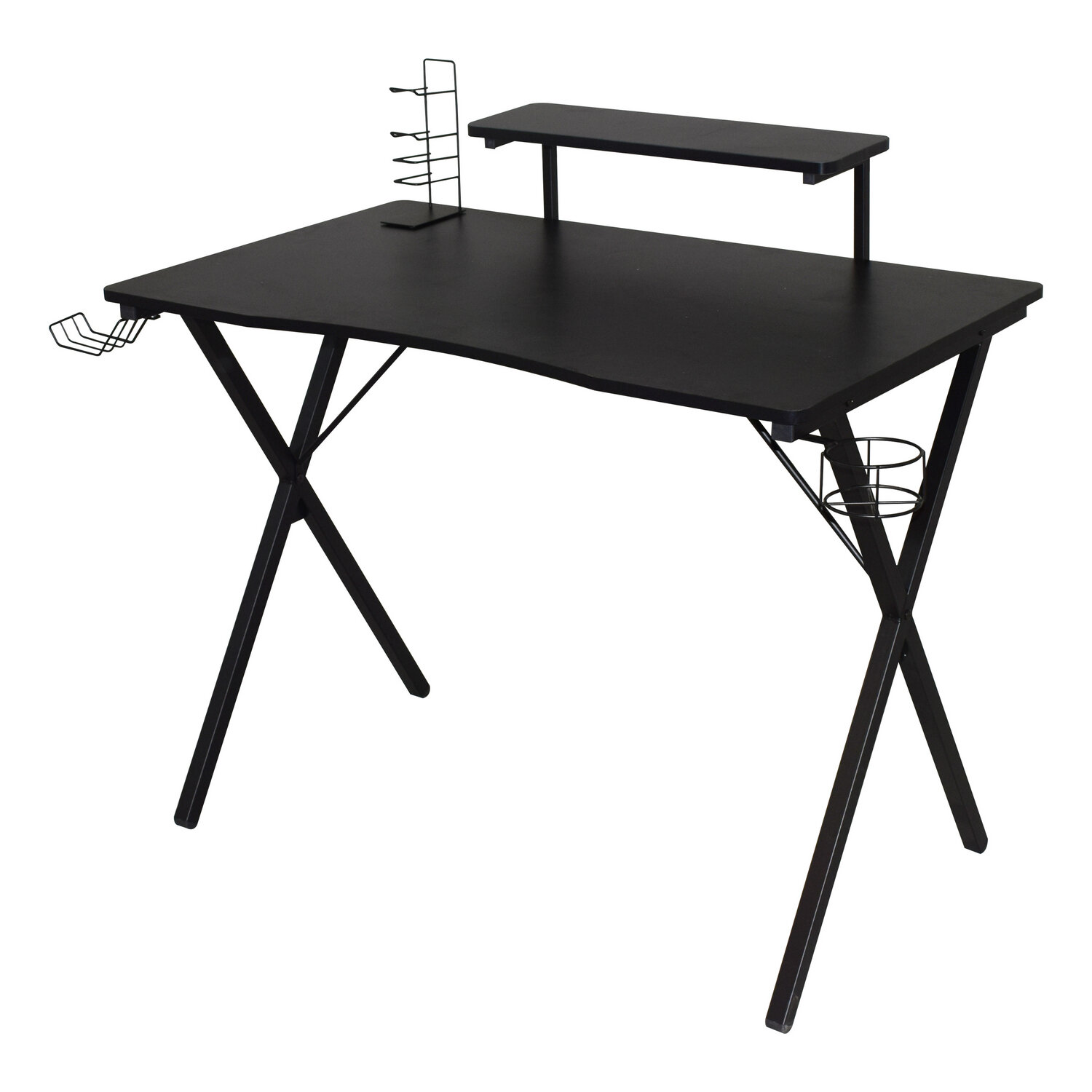 Прочный каркас, обеспечивающий устойчивость, выполнен из металла с матовым покрытием и сечением 25×25 мм.Размеры столешницы позволяют разместиться за столом с максимально возможным комфортом.Дополнительная полка предназначена для установки монитора на высоте, которая обеспечивает оптимальный обзор происходящего на экране.Максимальная нагрузка на столешницу – до 40 кг. Для поддержания порядка на рабочей поверхности стол оборудован держателями для геймпада, кружки и наушников. Ножки оснащены накладками, которые защищают пол от повреждений.