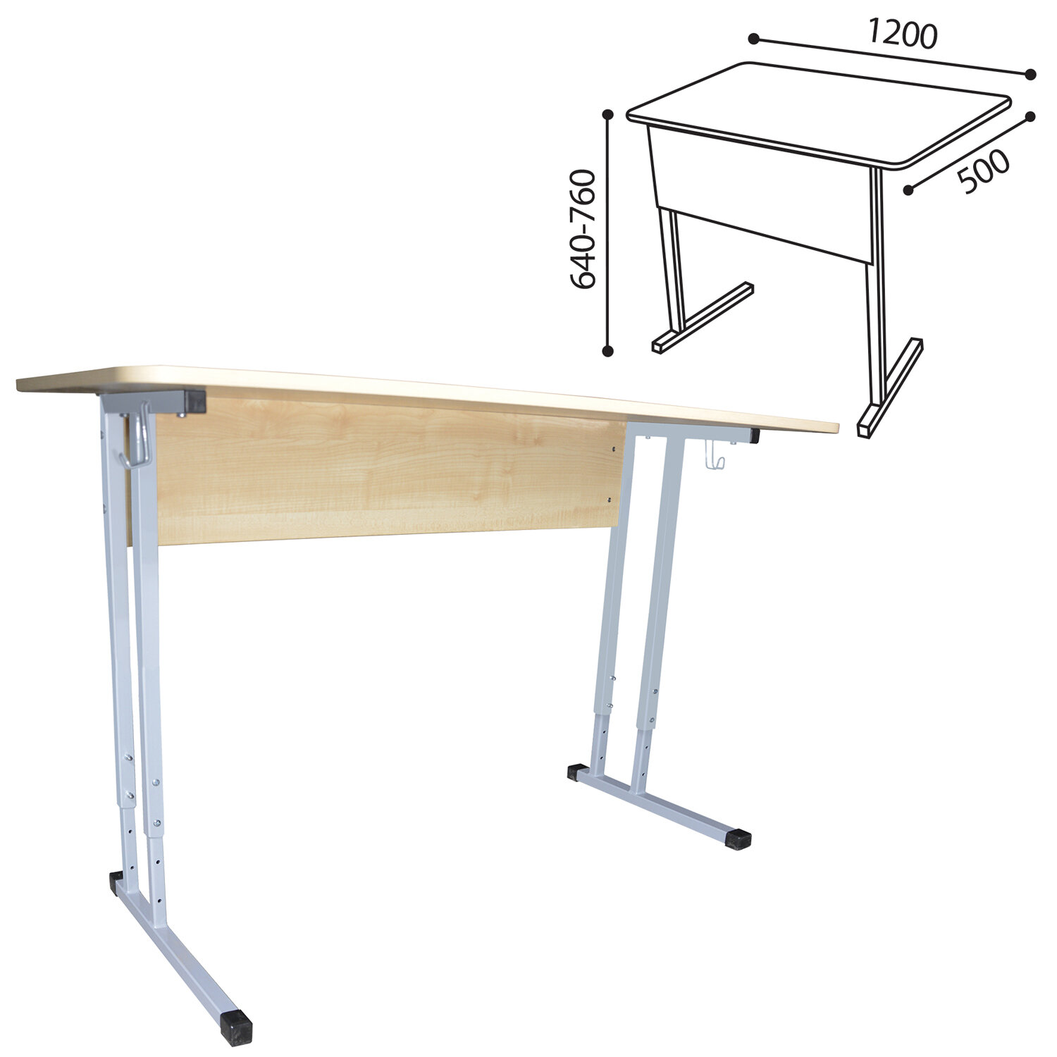 Стол-парта 2-местный регулируемый «Умник», 1200х500х640-760 мм, рост 4-6, серый каркас, ЛДСП клён