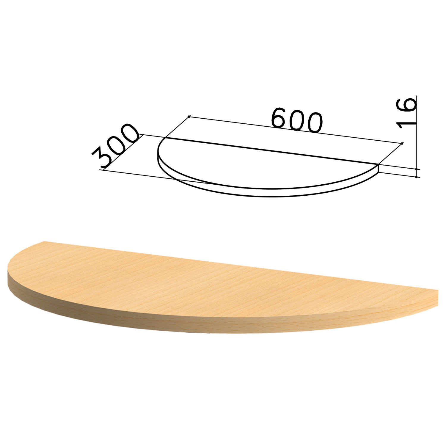 Стол приставной полукруг «Канц», 600х300х750 мм, БЕЗ ОПОРЫ, цвет бук невский, ПК35.10