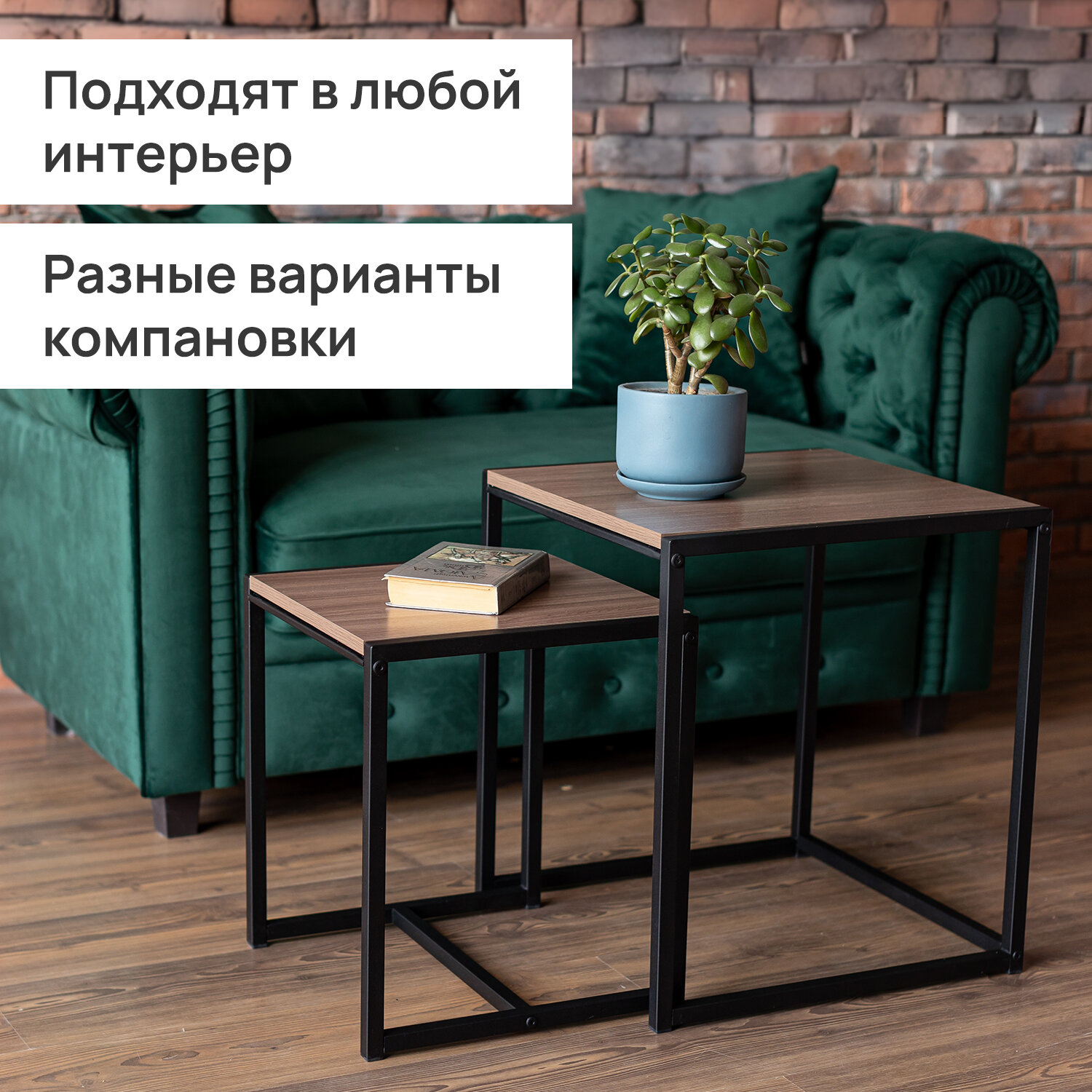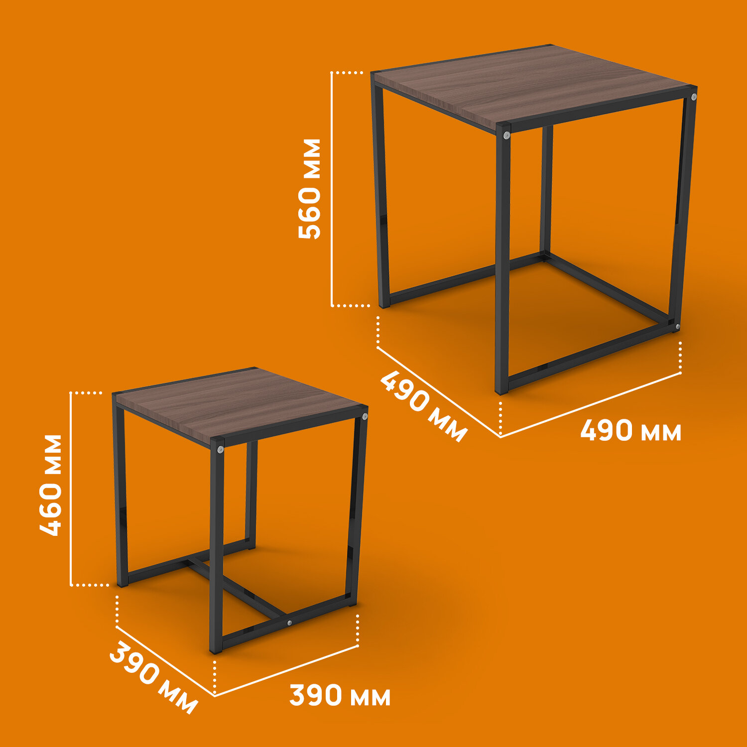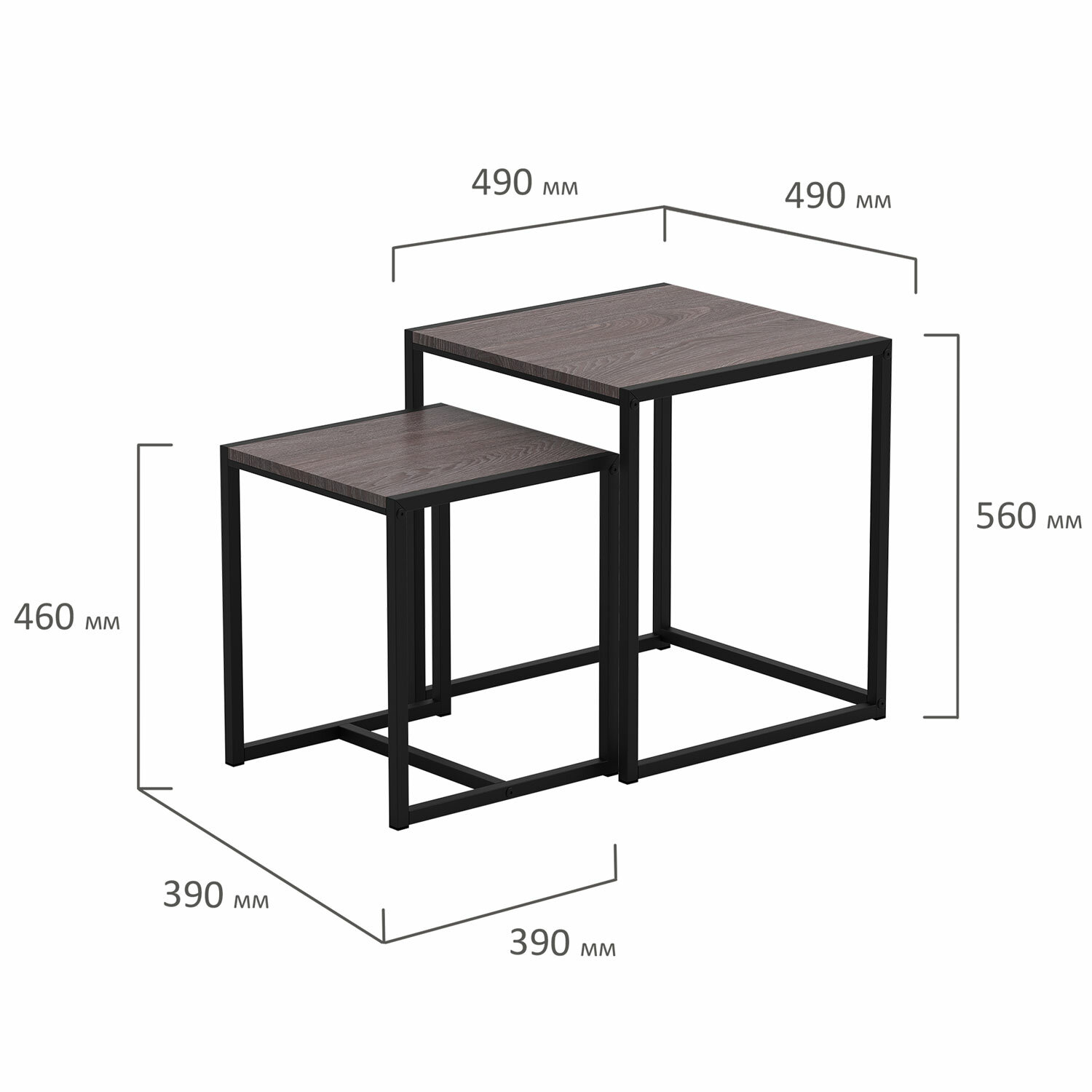 Стол журнальный «Терса», 490х490х560/390х390х460 мм, КОМПЛЕКТ 2 шт., металл/ЛДСП ясень шимо темный