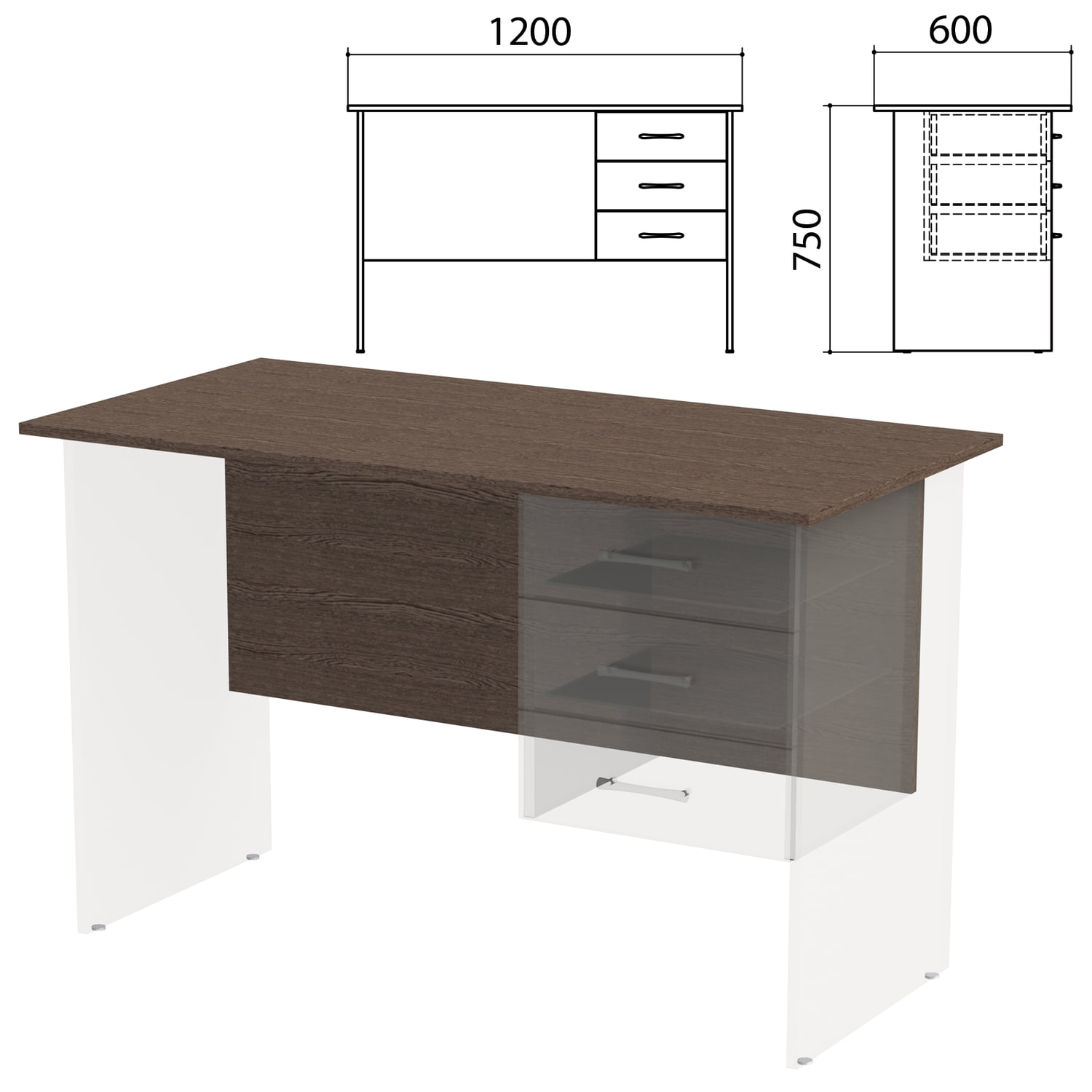 Столешница, царга стола письменного с тумбой «Канц» 1200х600х750 мм, цвет венге, СК50.16.1