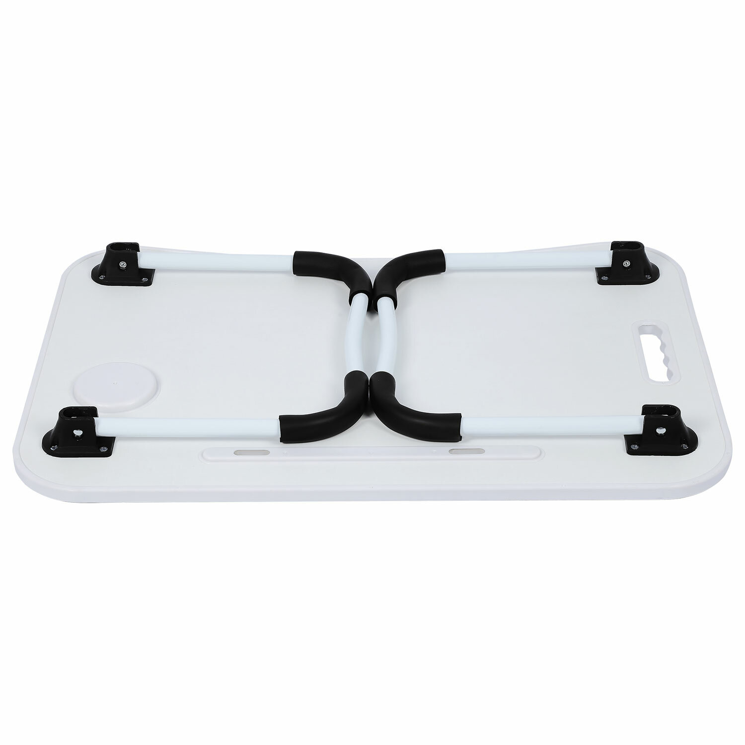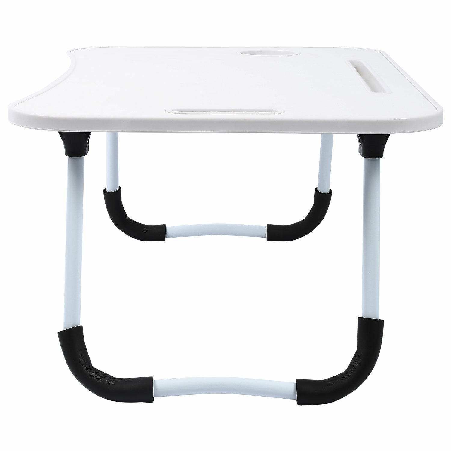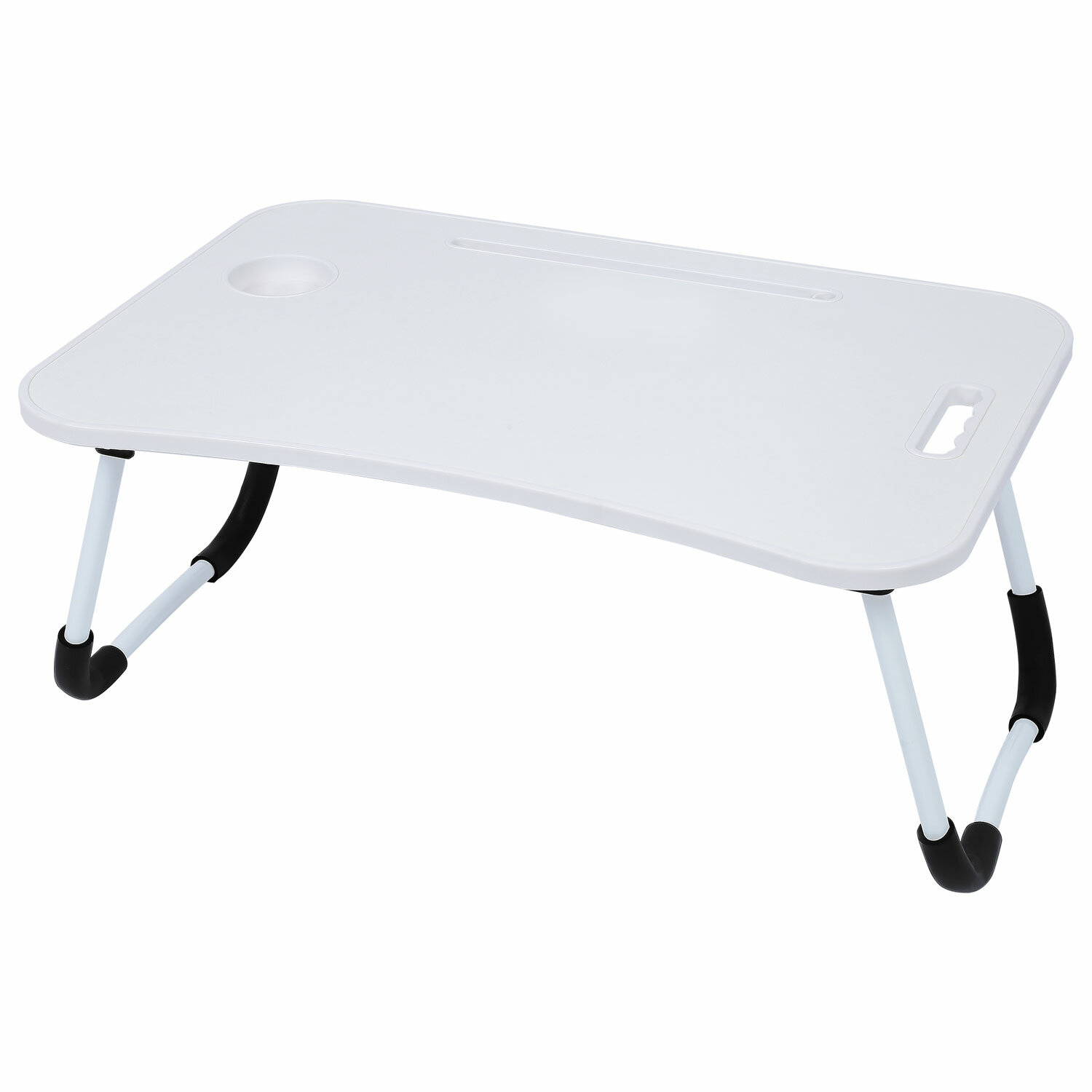 Изготовлен из высококачественного пластика. Классический дизайн столика хорошо впишется в любой интерьер. Благодаря столику для ноутбука снижается нагрузка на мышцы спины и шеи во время работы с гаджетом. Наличие на столешнице специального углубления даёт возможность разместить на ней стакан или кружку.