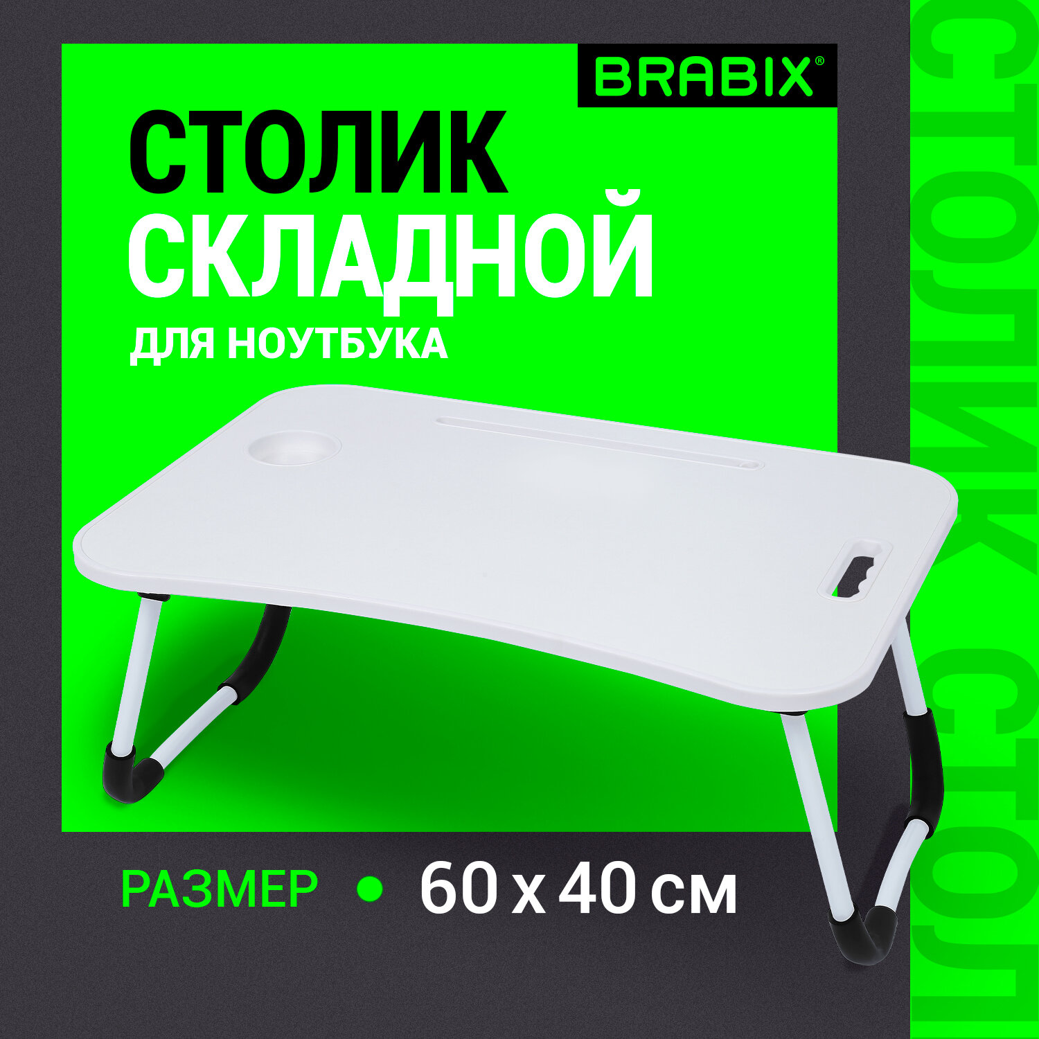 Столик для ноутбука BRABIX отлично подойдет для работы с ноутбуком лежа, для занятия творчеством, для завтрака в постели. Столик можно использовать в качестве полки. Также он станет полезным подарком для друзей, родственников и коллег.