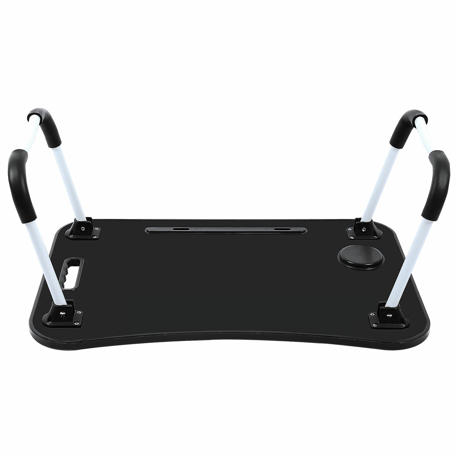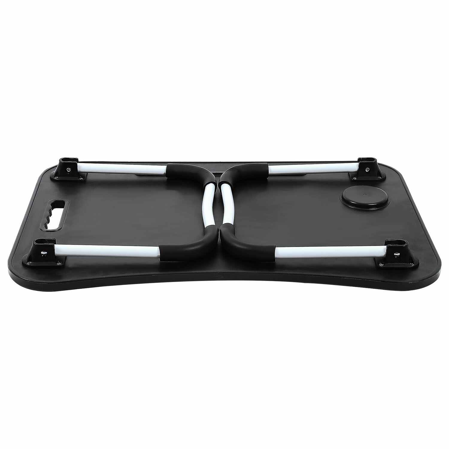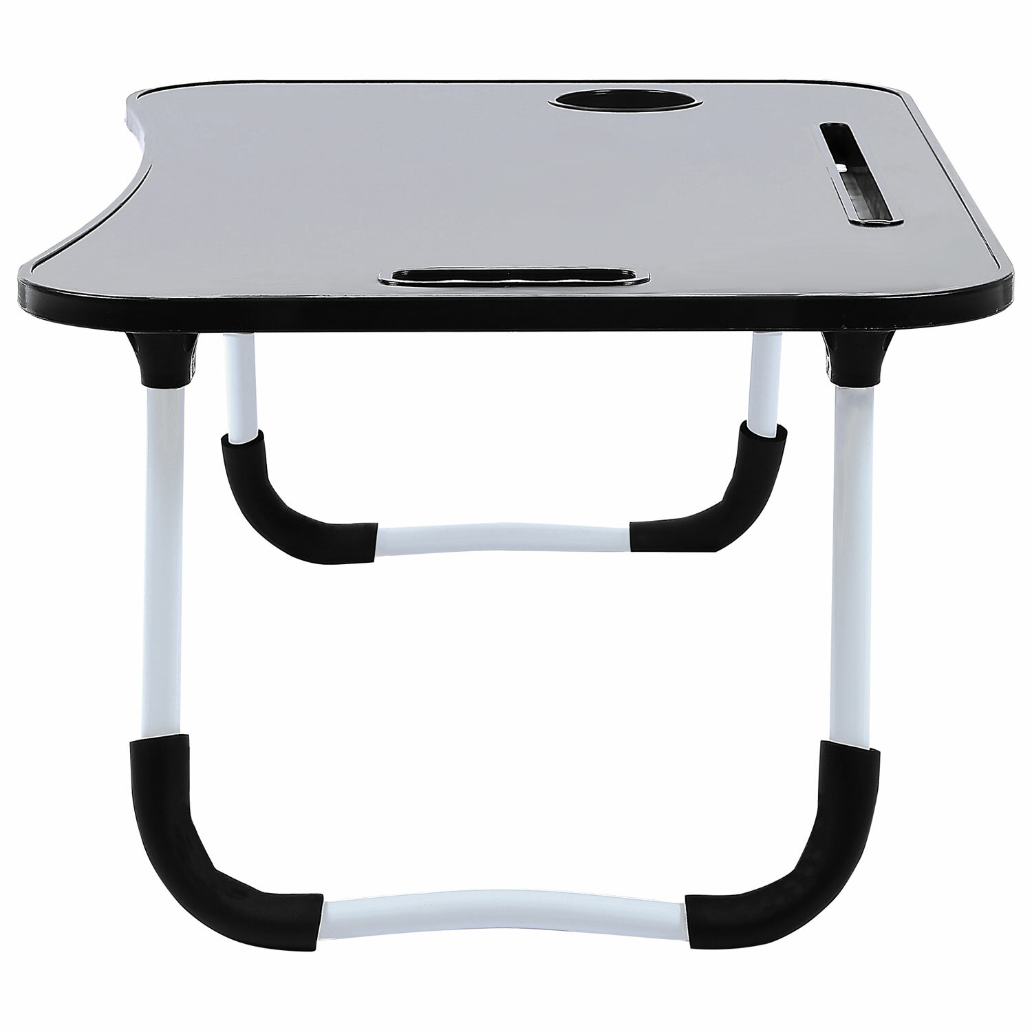 Изготовлен из МДФ. Классический дизайн столика хорошо впишется в любой интерьер. Благодаря столику для ноутбука снижается нагрузка на мышцы спины и шеи во время работы с гаджетом. Наличие на столешнице специального углубления даёт возможность разместить на ней стакан или кружку.