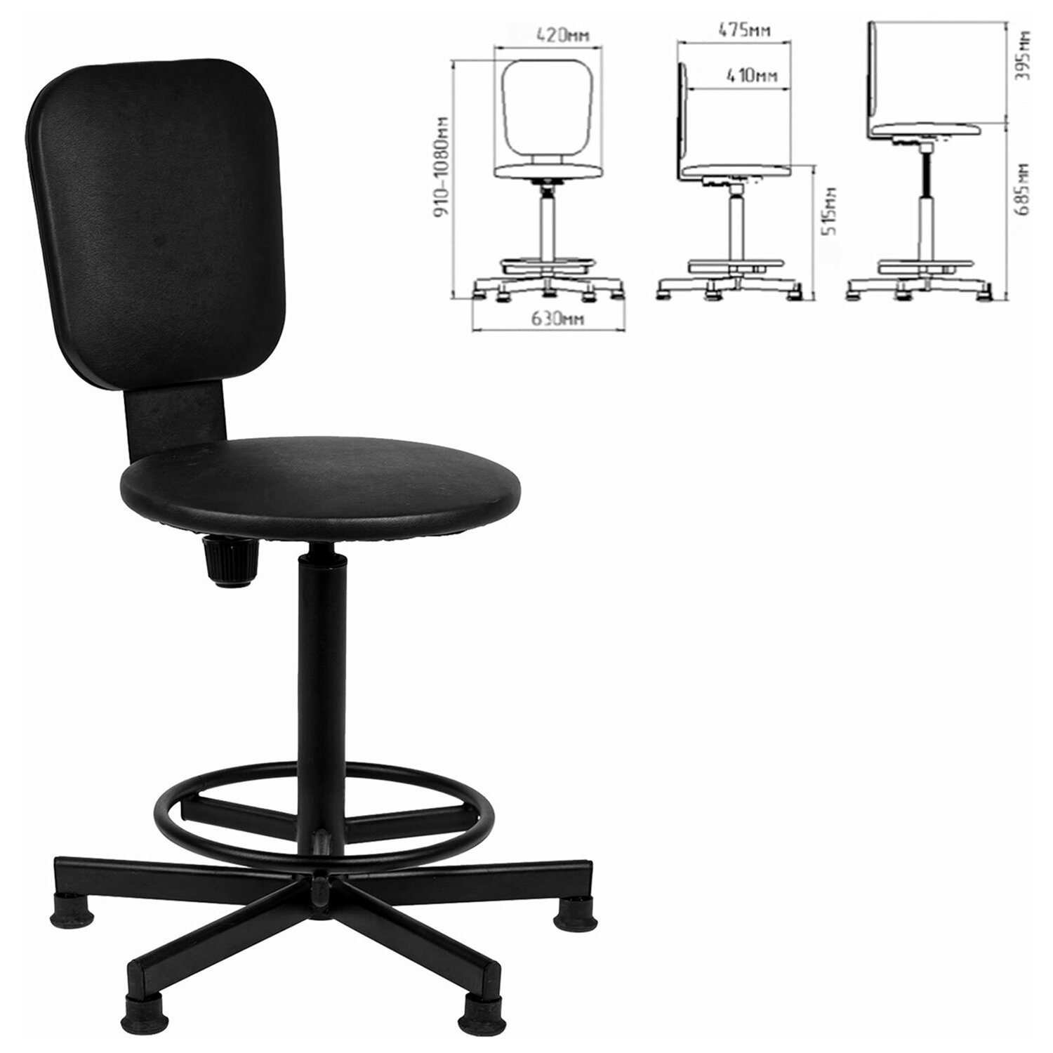Стул кресло кассира, ресепшен РС37, на винте, без подлокотников, кожзам, черное