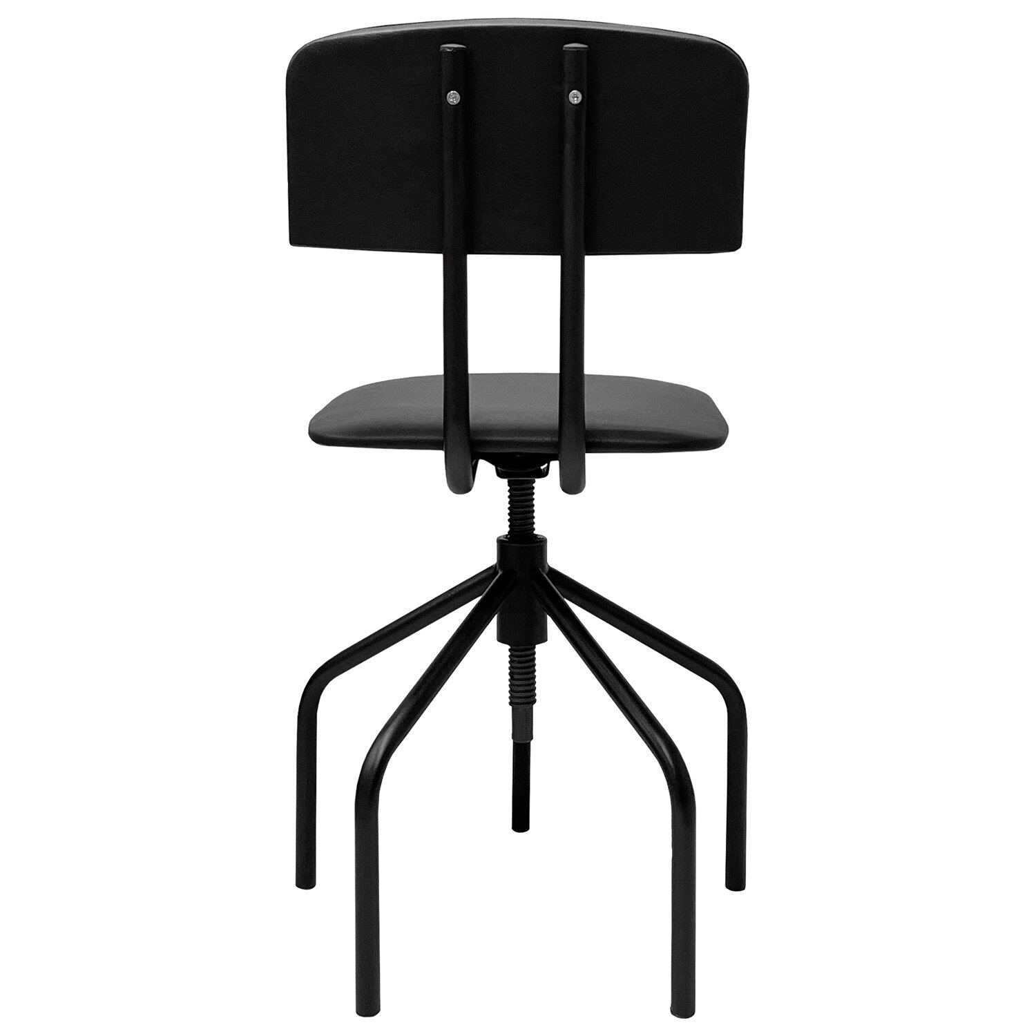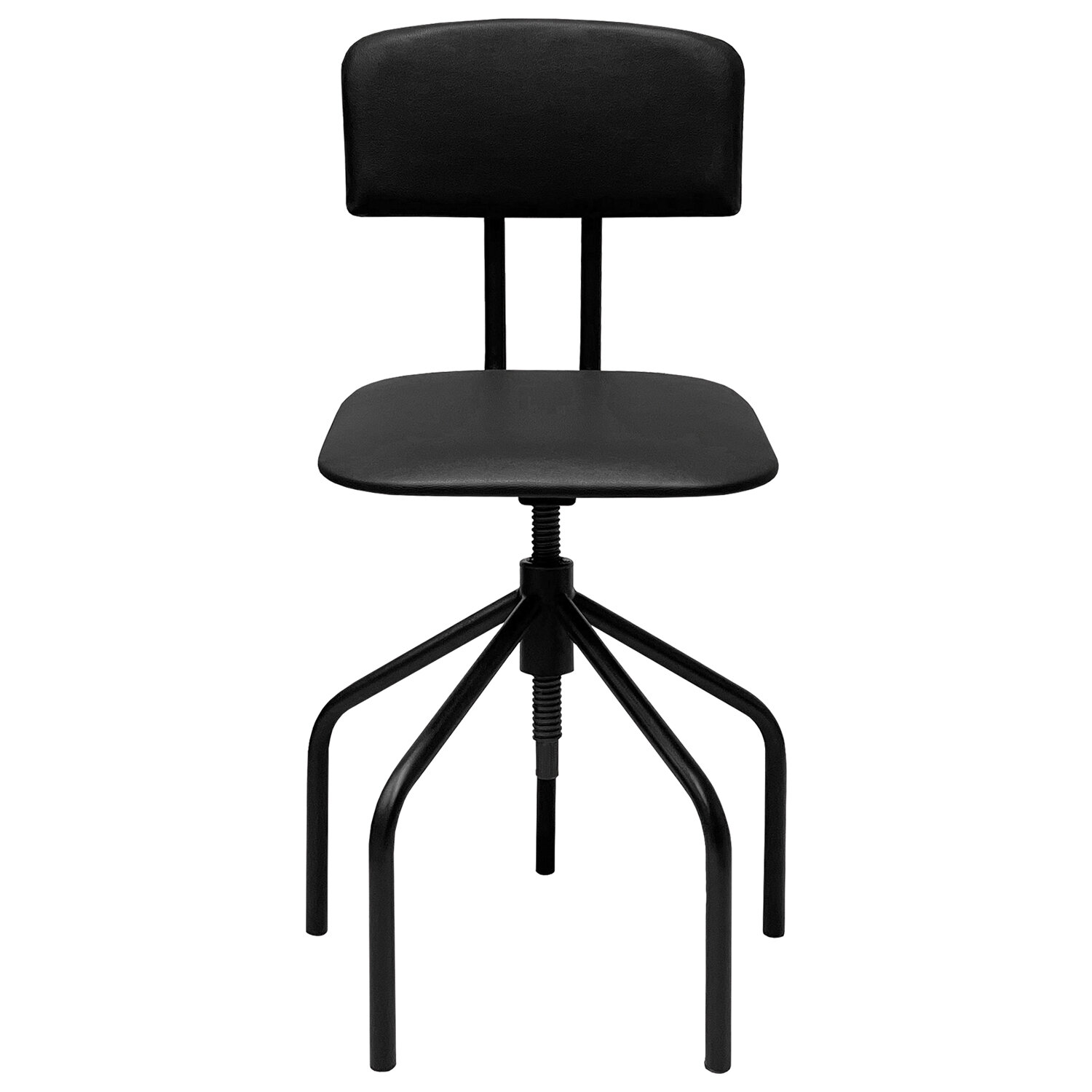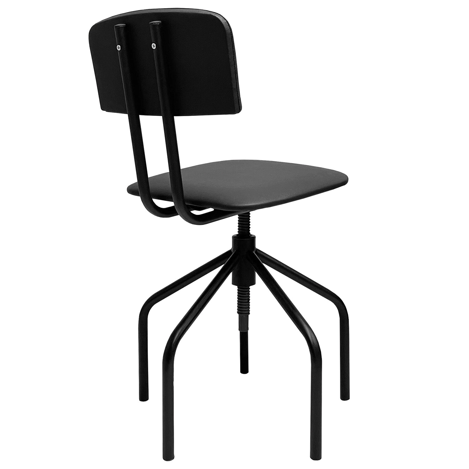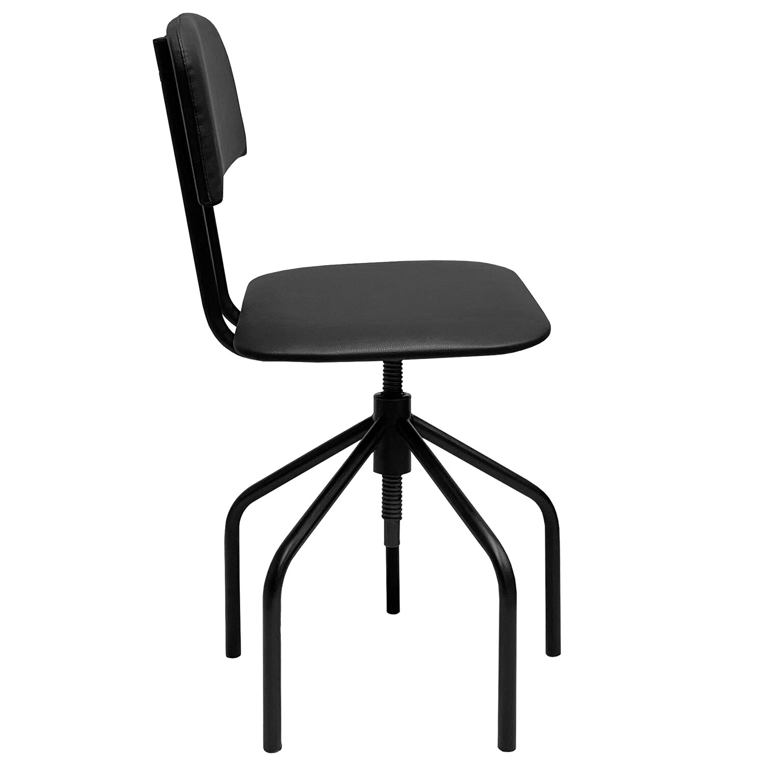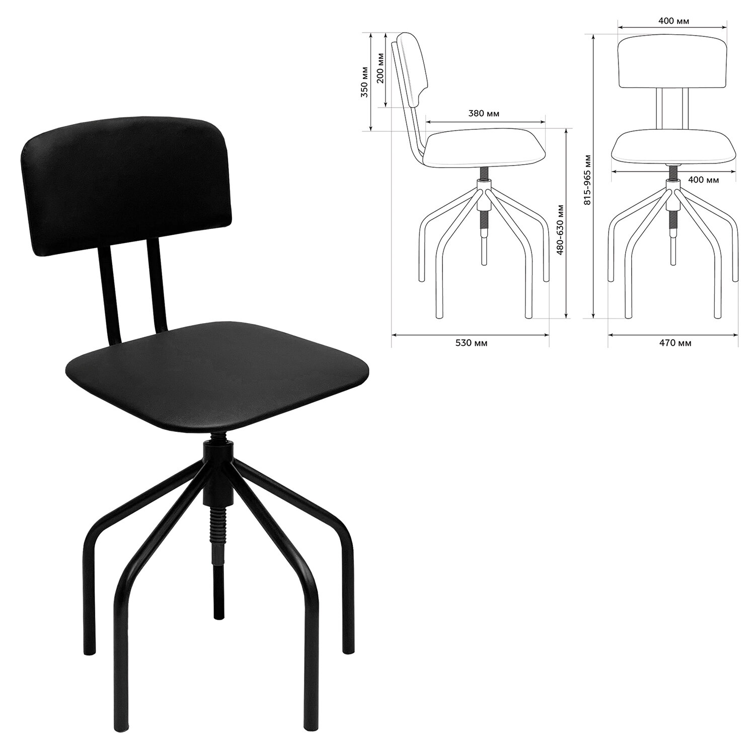 Металлический каркас обладает повышенной прочностью и надежностью.Материал обивки – кожзам, практичный и неприхотливый в уходе.Ножки стула оснащены пластиковыми заглушками для защиты напольного покрытия.Кресло имеет винтовую регулировку высоты сиденья путем вращения блока ‘сиденье-спинка’ вокруг оси. Максимальная статическая нагрузка – 150 кг.