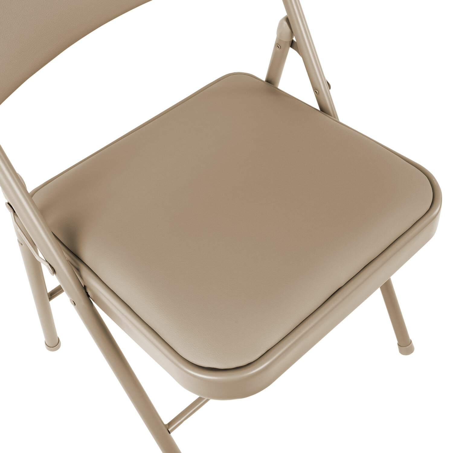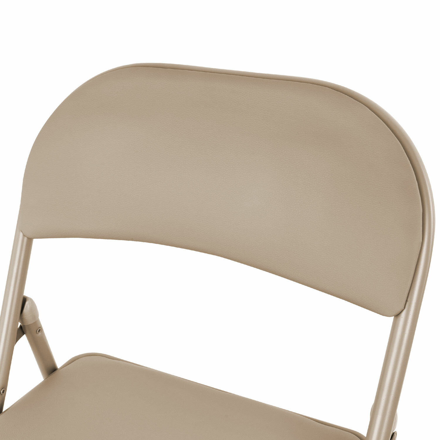 Материал обивки — качественный кожзаменитель с повышенной износостойкостью. Складная конструкция сэкономит место при перевозке и хранении. Прочная металлическая рама и металлическое основание сиденья обеспечат долговечность эксплуатации, а пластиковые насадки на ножках не дадут испортить напольное покрытие. В набивке спинки и сиденья использован поролон высокой плотности. Кресло способно выдерживать нагрузку до 110 кг.