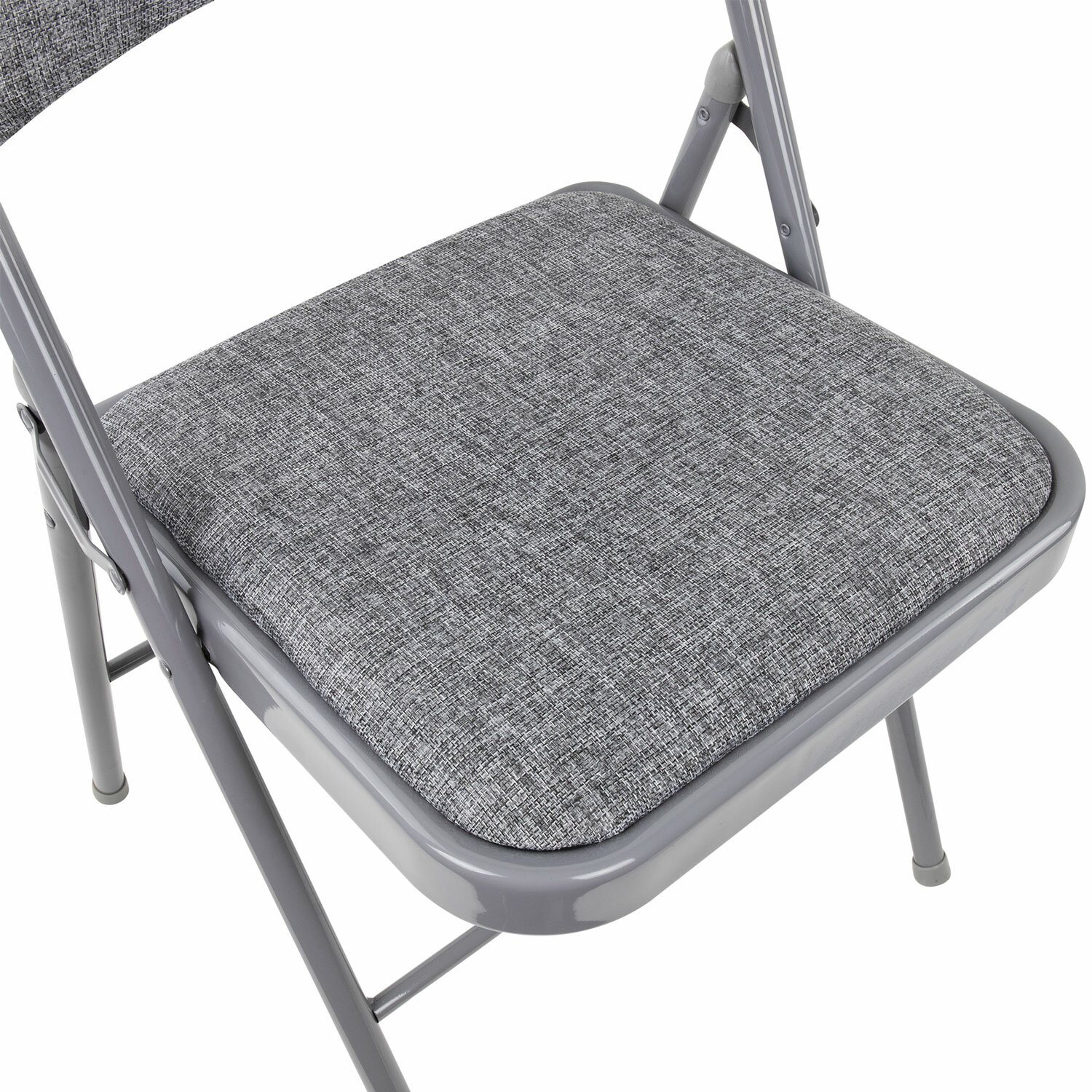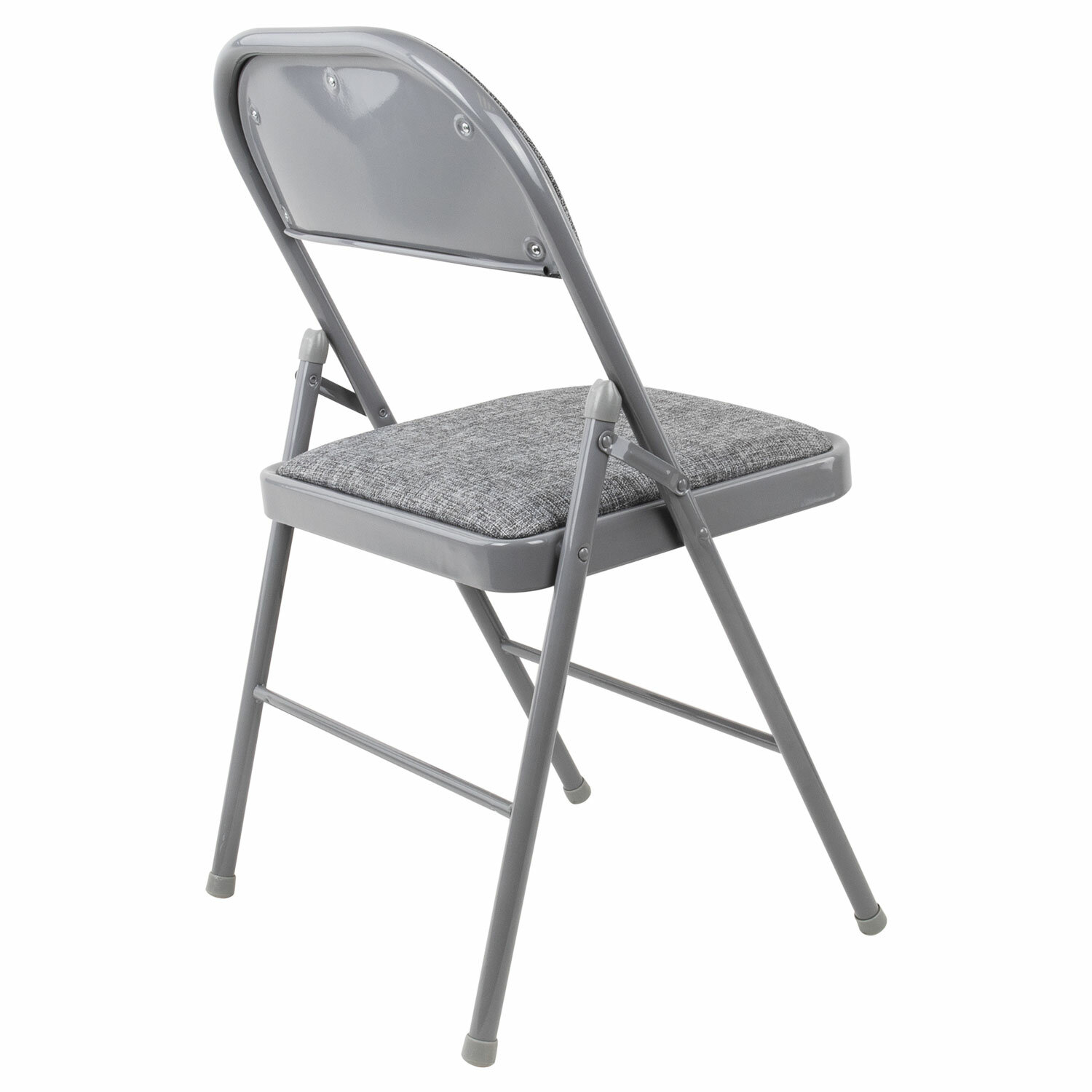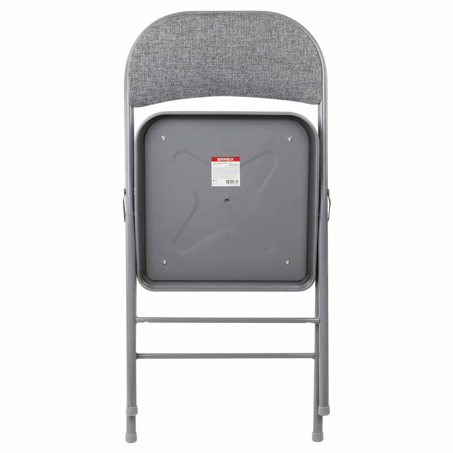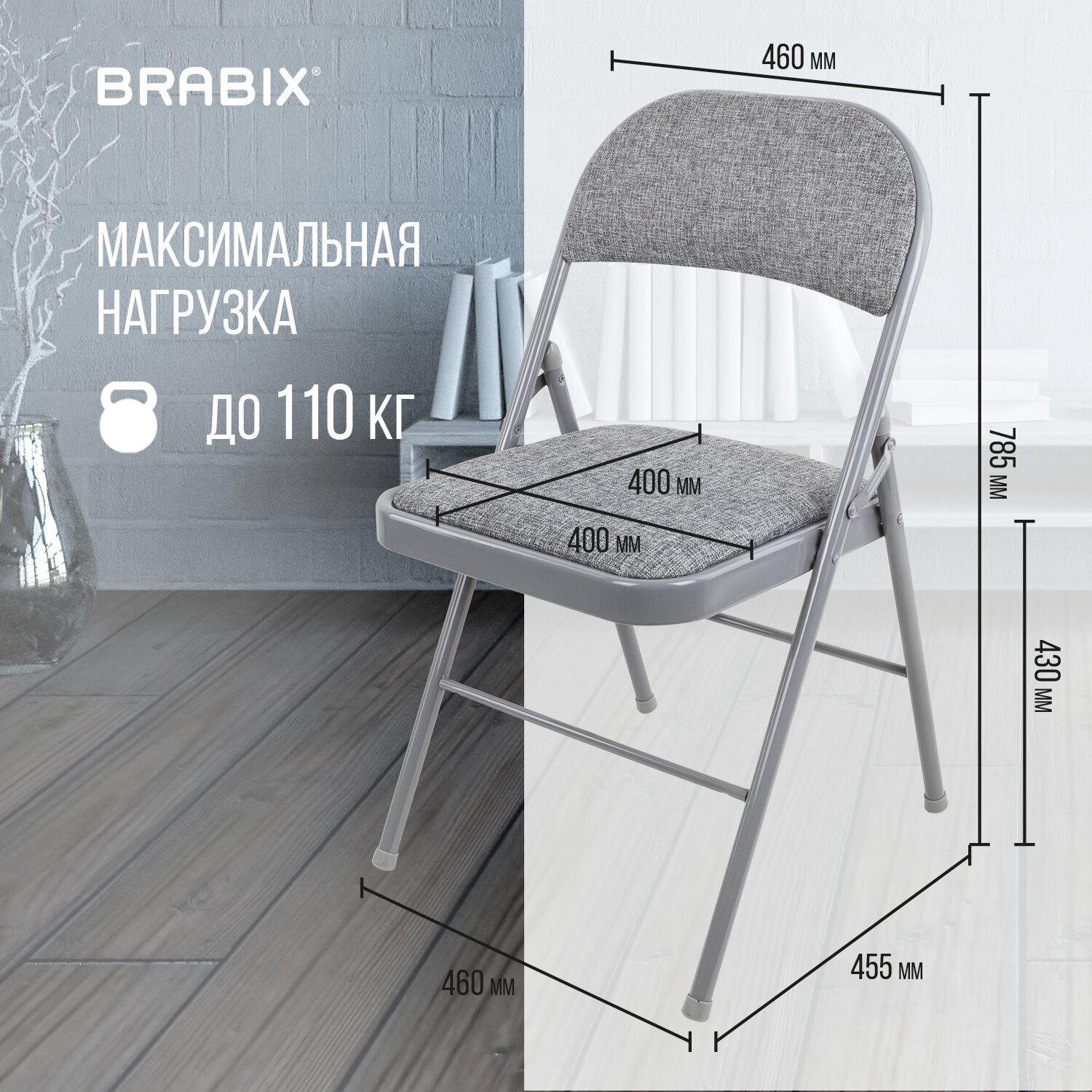 Материал обивки — высококачественная ткань с повышенной износостойкостью. Складная конструкция сэкономит место при перевозке и хранении. Прочная металлическая рама и металлическое основание сиденья обеспечат долговечность эксплуатации, а пластиковые насадки на ножках не дадут испортить напольное покрытие. В набивке спинки и сиденья использован поролон высокой плотности. Стул способен выдерживать нагрузку до 110 кг.