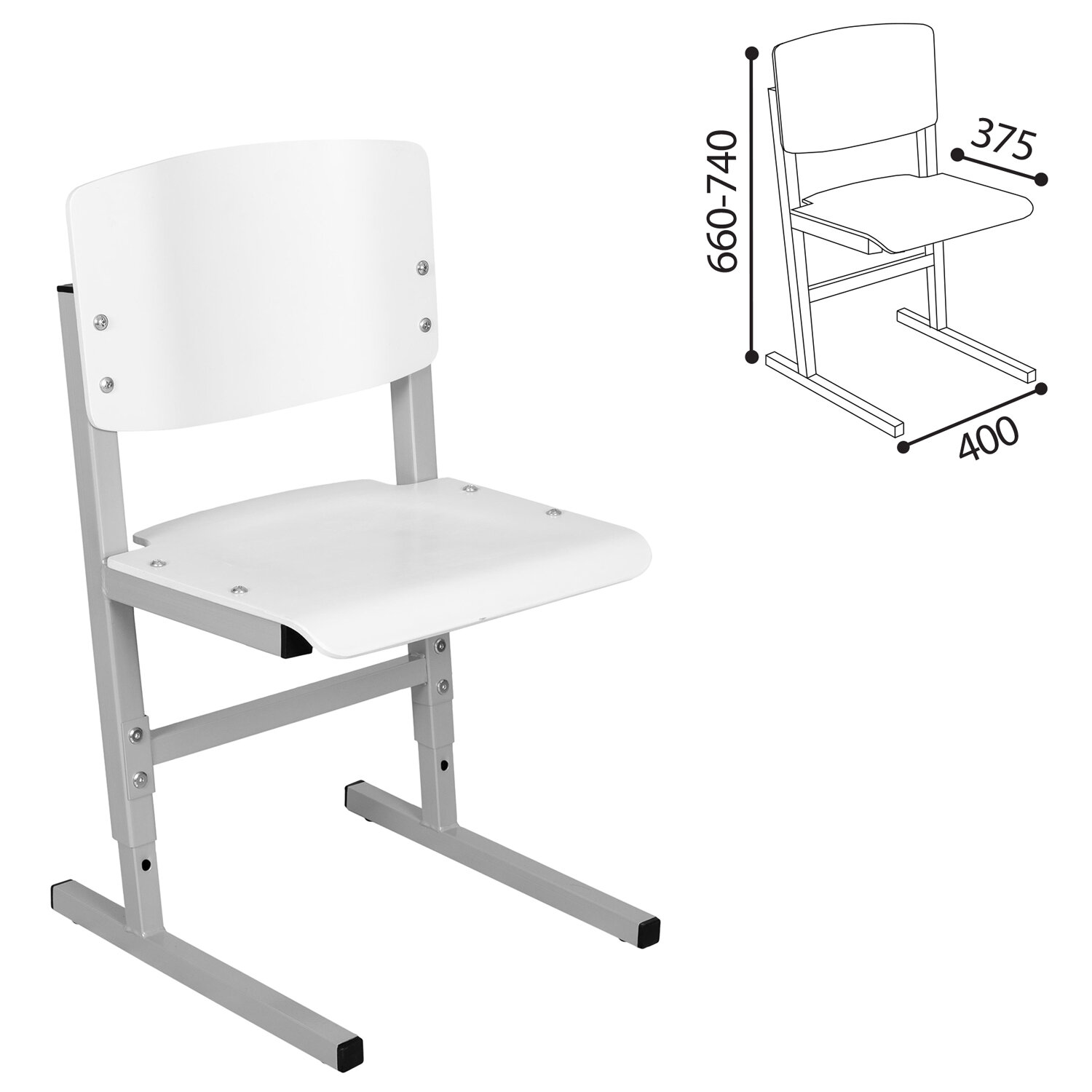 Стул ученический регулируемый СУТ.05-01, 400х375х660-740 мм, рост 4-6, серый каркас, фанера белая