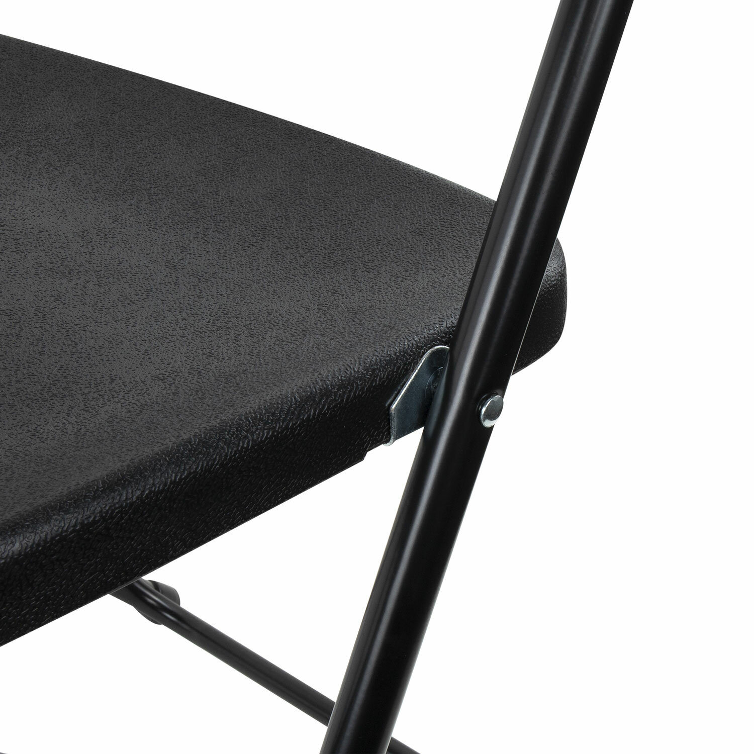 Прочная металлическая рама толщиной 1,2 мм обеспечивает долговечность эксплуатации, а пластиковые насадки на ножках защищают напольное покрытие от повреждений. Модель оснащена пластиковой спинкой с эргономичным профилем. Складная конструкция экономит место при перевозке и хранении. Стул выдерживает нагрузку до 110 кг. Для дополнительной сохранности комплект упакован в картонную коробку.