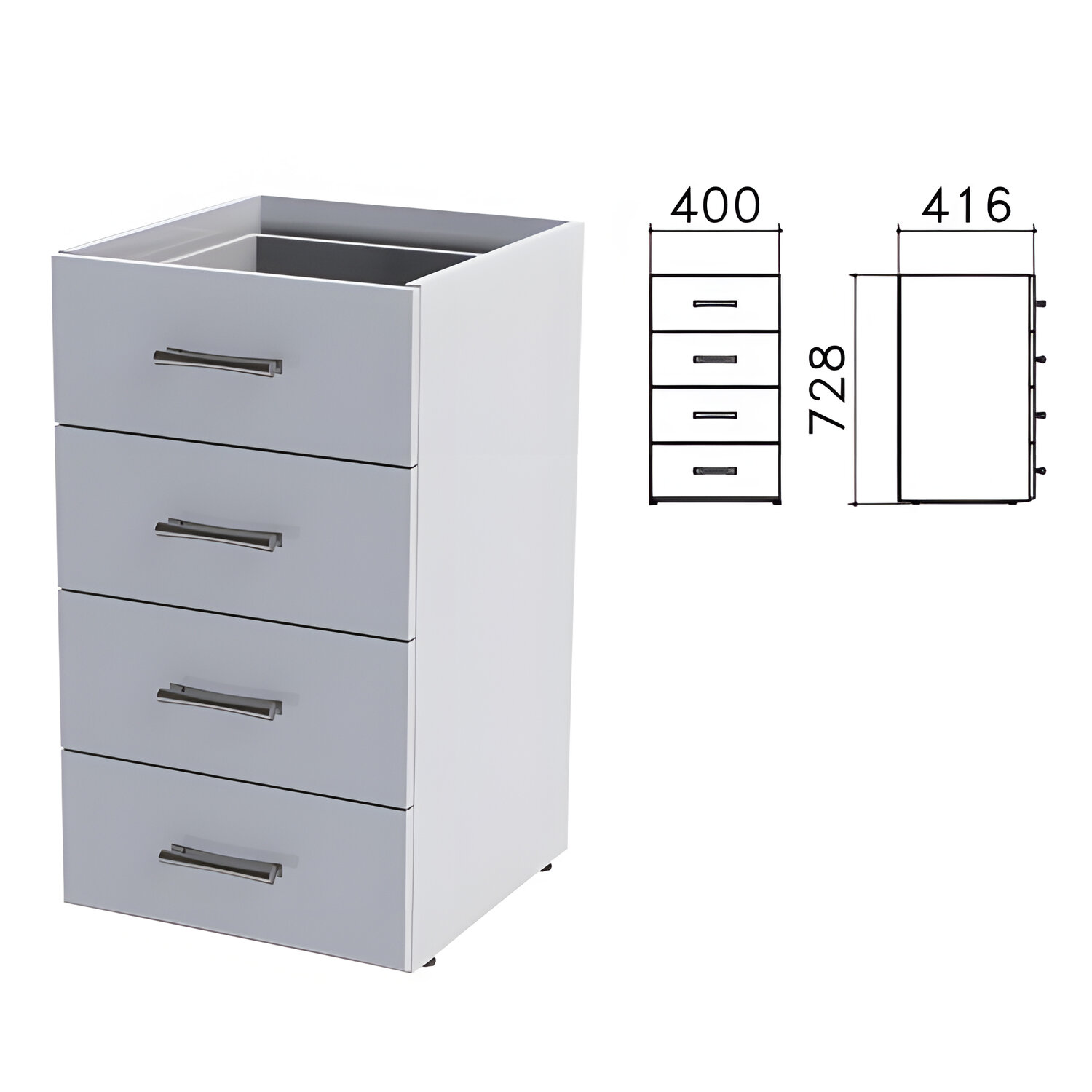 Тумба (каркас БЕЗ КРЫШКИ) приставная «Монолит», 400х416х728 мм, 4 ящика, серая, ТМ05.11