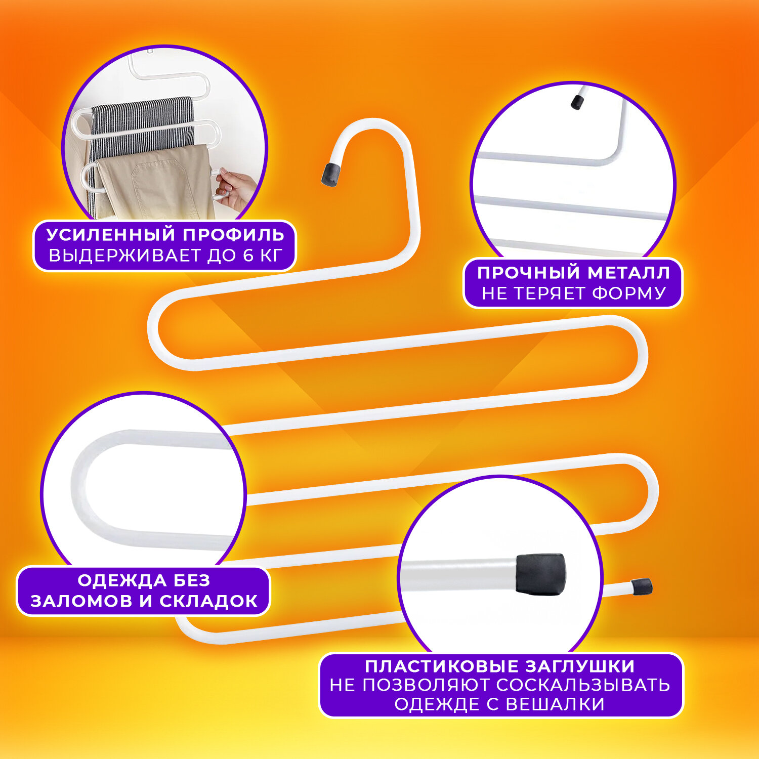 Вешалка для брюк и одежды «ЗМЕЙКА» позволяет повесить большее количество одежды на вешалку, что экономит время и облегчает поиск нужной вещи в шкафу.
