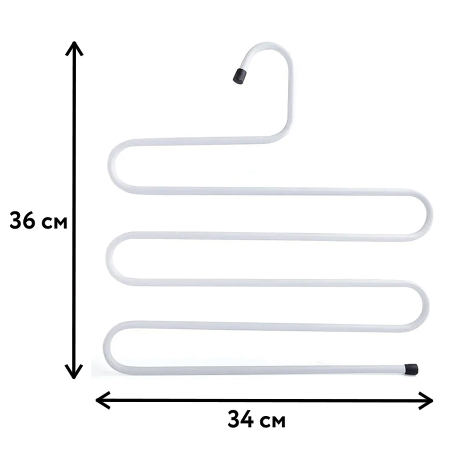 Предлагаем универсальную металлическую вешалку, которая поможет организовать пространство и создаст уют в доме. Вешалки для одежды изготовлены из прочного металла. Многоуровневая вешалка для брюк эстетичной изогнутой формы выдерживает до 6 кг благодаря усиленному металлическому профилю. Она не погнется даже под тяжестью зимних штанов или мокрых полотенец. Пластиковые заглушки на концах не позволят соскальзывать одежде с вешалки, а самому аксессуару с перекладины шкафа. Вешалка компактная и не занимает много места — ее размер 34 на 36 см, При этом на одной такой вешалке можно разместить до 5 предметов одежды. Подойдет для брюк, женских и мужских шарфов, широких декоративных шейных платков, галстуков и других аксессуаров гардероба. Вешалку «Змейка» можно использовать как для взрослой, так и для детской одежды. В комплекте 2 вешалки.