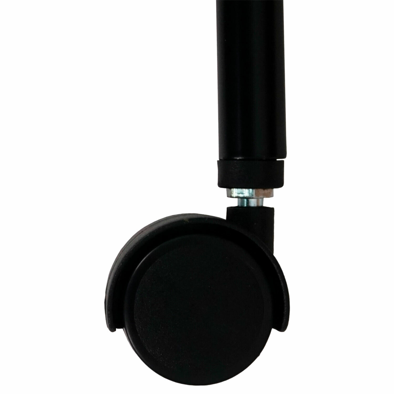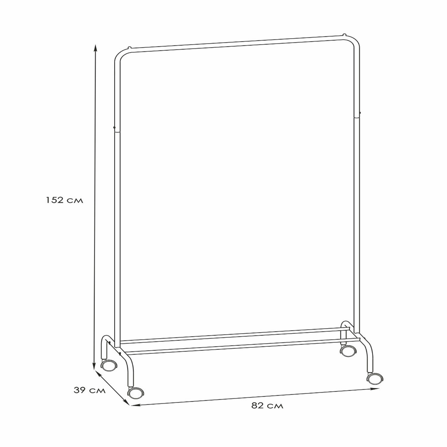 Каркас выполнен из стальной трубы диаметром 18 мм с полимерным покрытием.Железная перекладина вмещает до 15 плечиков, распределенная нагрузка — до 20 кг.Перекладина оснащена ограничителями, предотвращающими соскальзывание плечиков.Один съемный декоративный крючок для аксессуаров.Полка для размещения обуви, коробок или органайзеров, распределенная нагрузка — до 30 кг.На ножках предусмотрены пластиковые поворотные роликовые опоры.Изделие поставляется в разобранном виде в картонной коробке с ручкой.Простая сборка согласно инструкции, шестигранный ключ в комплекте.