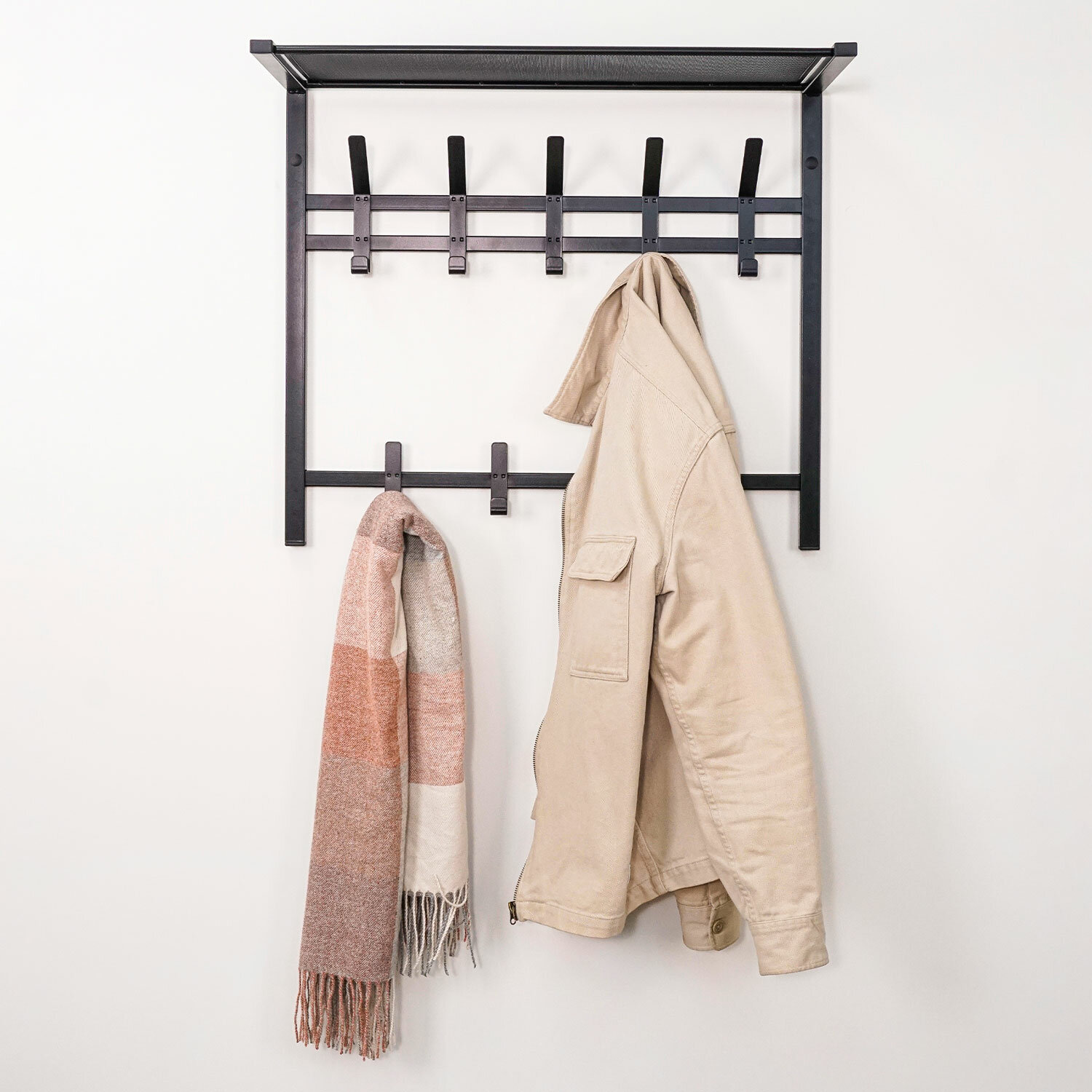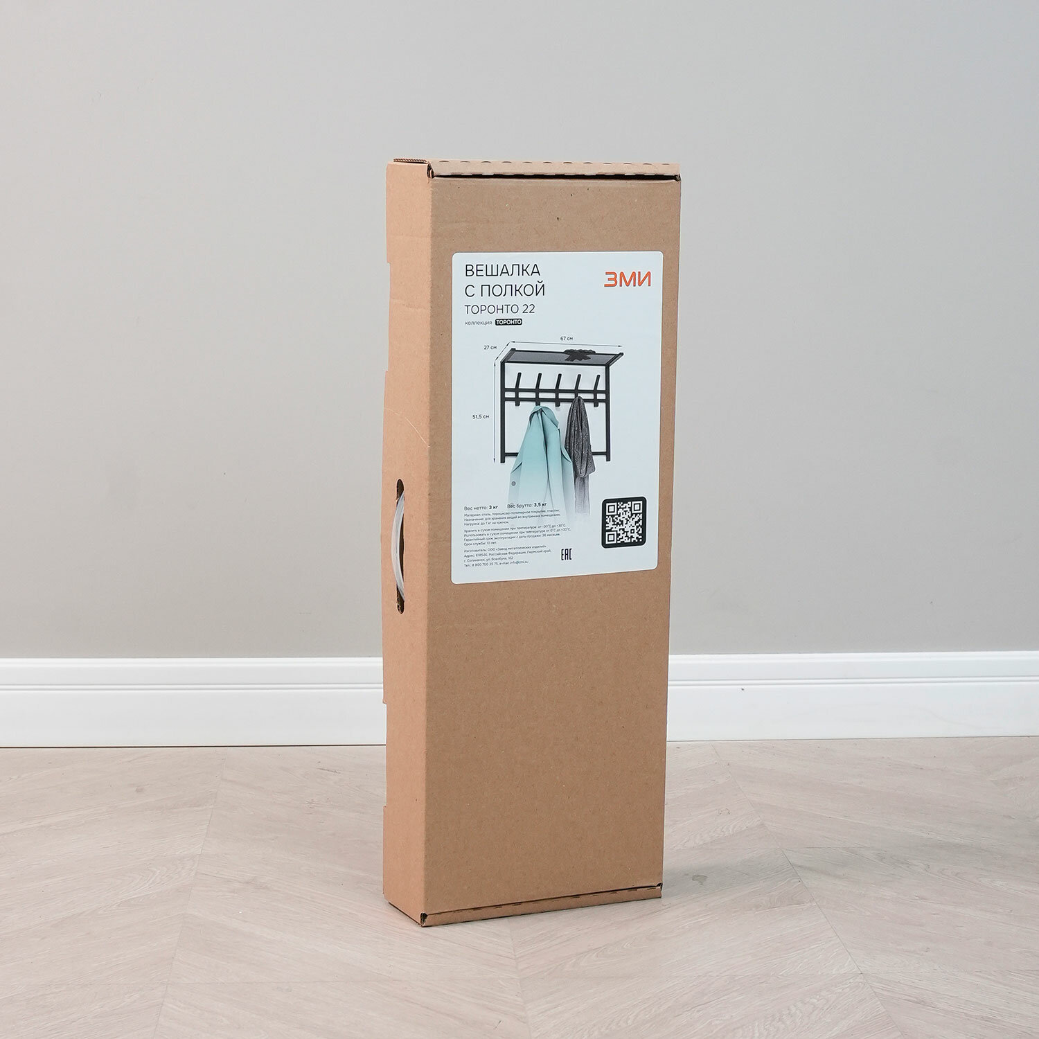 Вешалка настенная с полкой 2 яруса «Торонто-22», 585х670х270 мм, 9 крючков, металл, черная, ВСПТ22 Ч