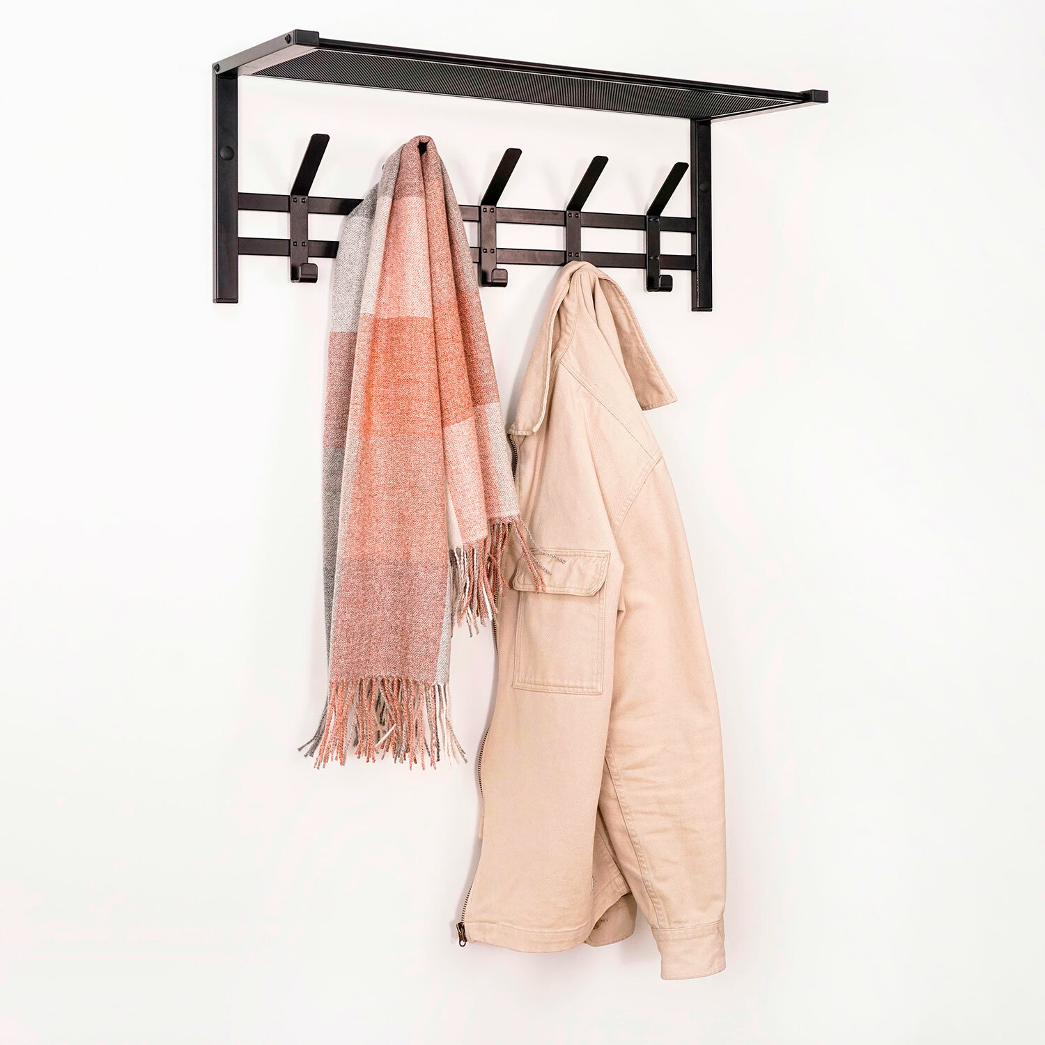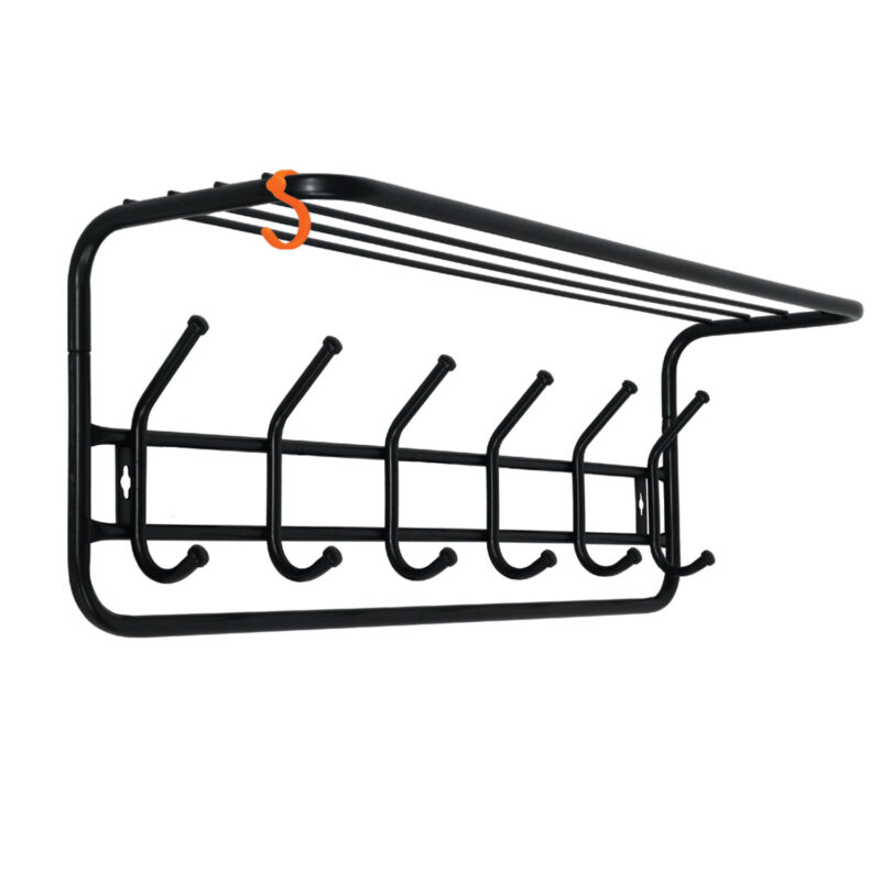 Вешалка настенная с полкой «Торонто-21», 270х670х270 мм, 5 крючков, металл, черная, ВСПТ21 Ч
