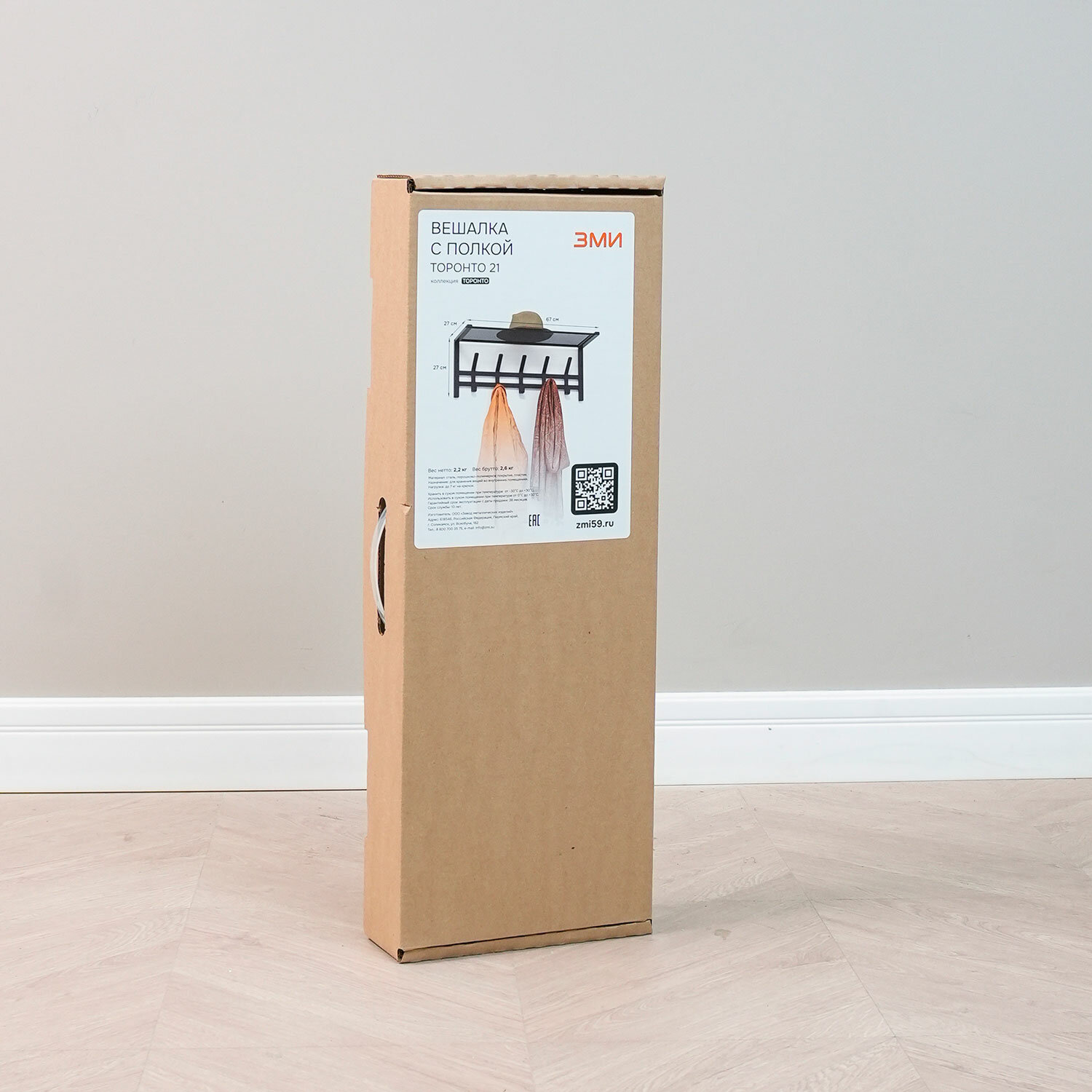 Прочный каркас из металлической трубы сечением 10х15 мм.Пять двойных крючков из металлического листа.Допустимая нагрузка на крючок — до 7 кг.Удобная полка для головных уборов из стального листа в мелкую сетку.Общая нагрузка на вешалку — до 42 кг.Изделие поставляется в разобранном виде в картонной коробке с ручкой.Простая сборка без использования инструментов.Крепеж к стене не входит в комплект фурнитуры!