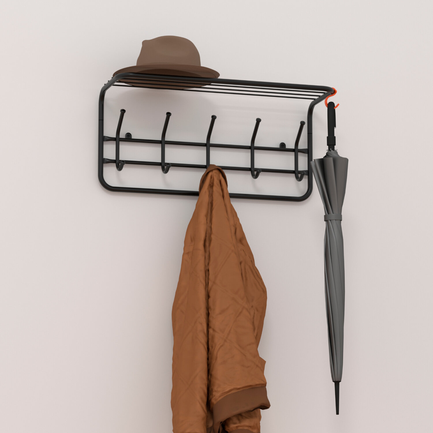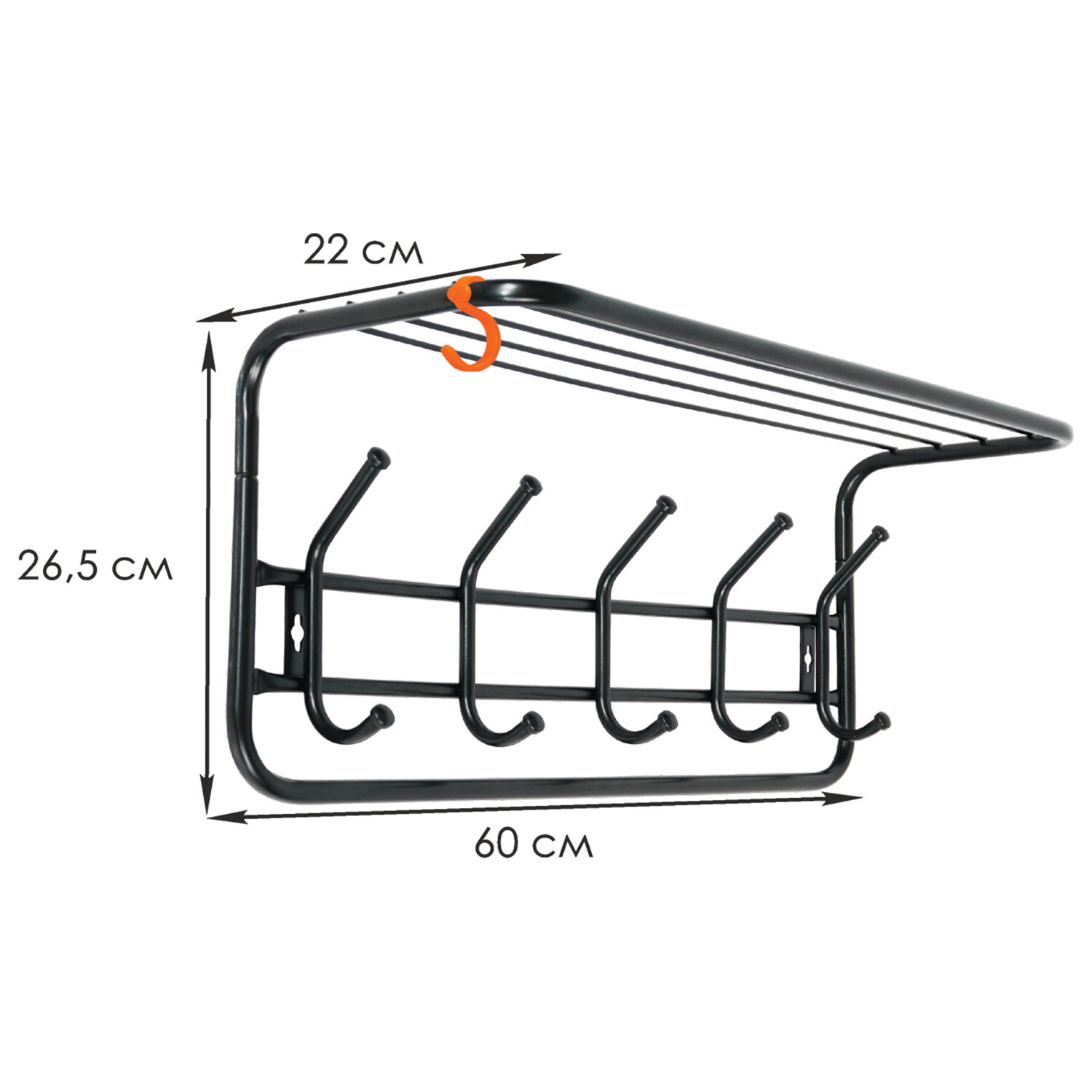 Вешалка настенная с полкой «ВСП6», 265х600х220 мм, 5 крючков, металл, черная, ВСП 6 Ч