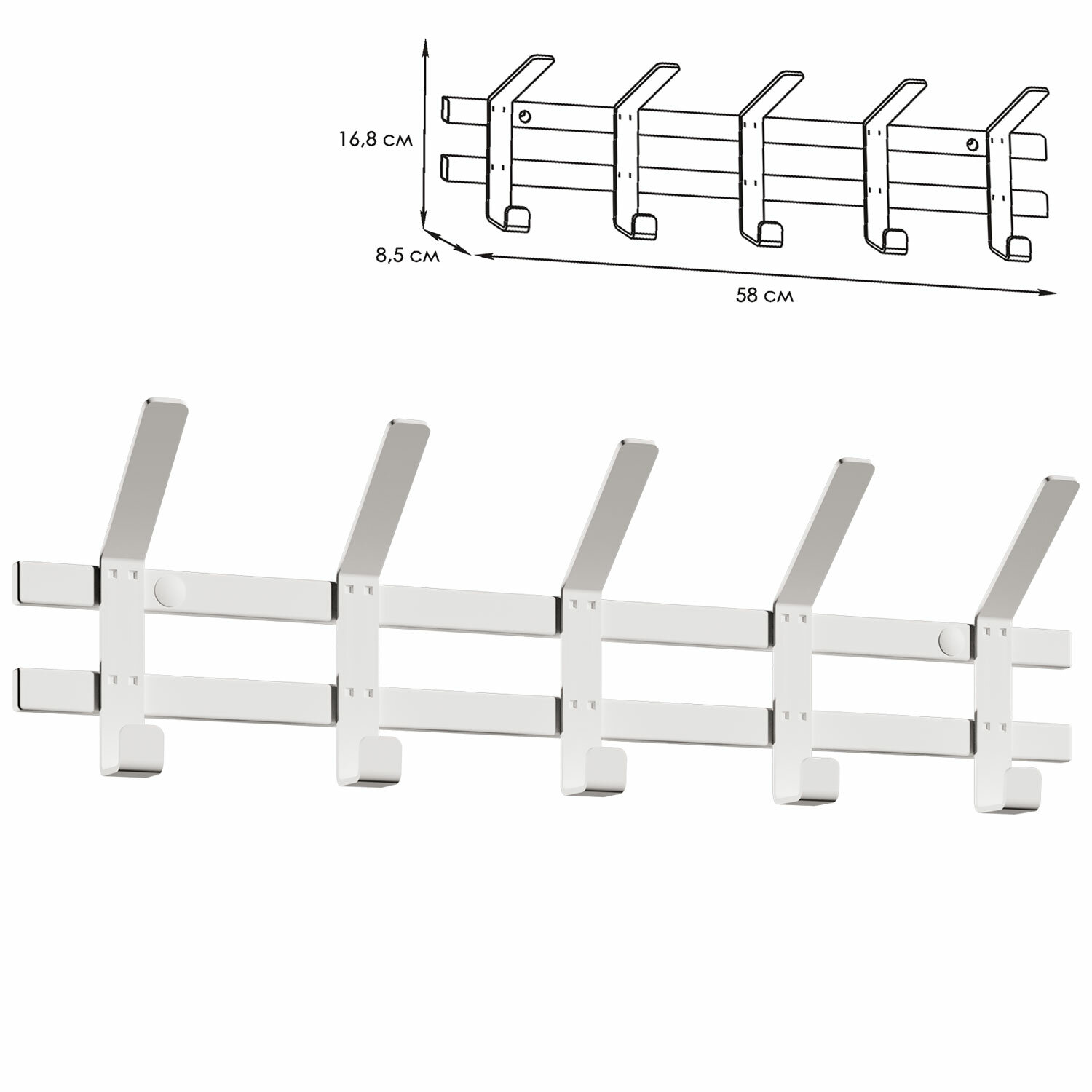 Вешалка настенная «Торонто-5», 168х580х85 мм, 5 крючков, металл, белая, ВНТ5 Б