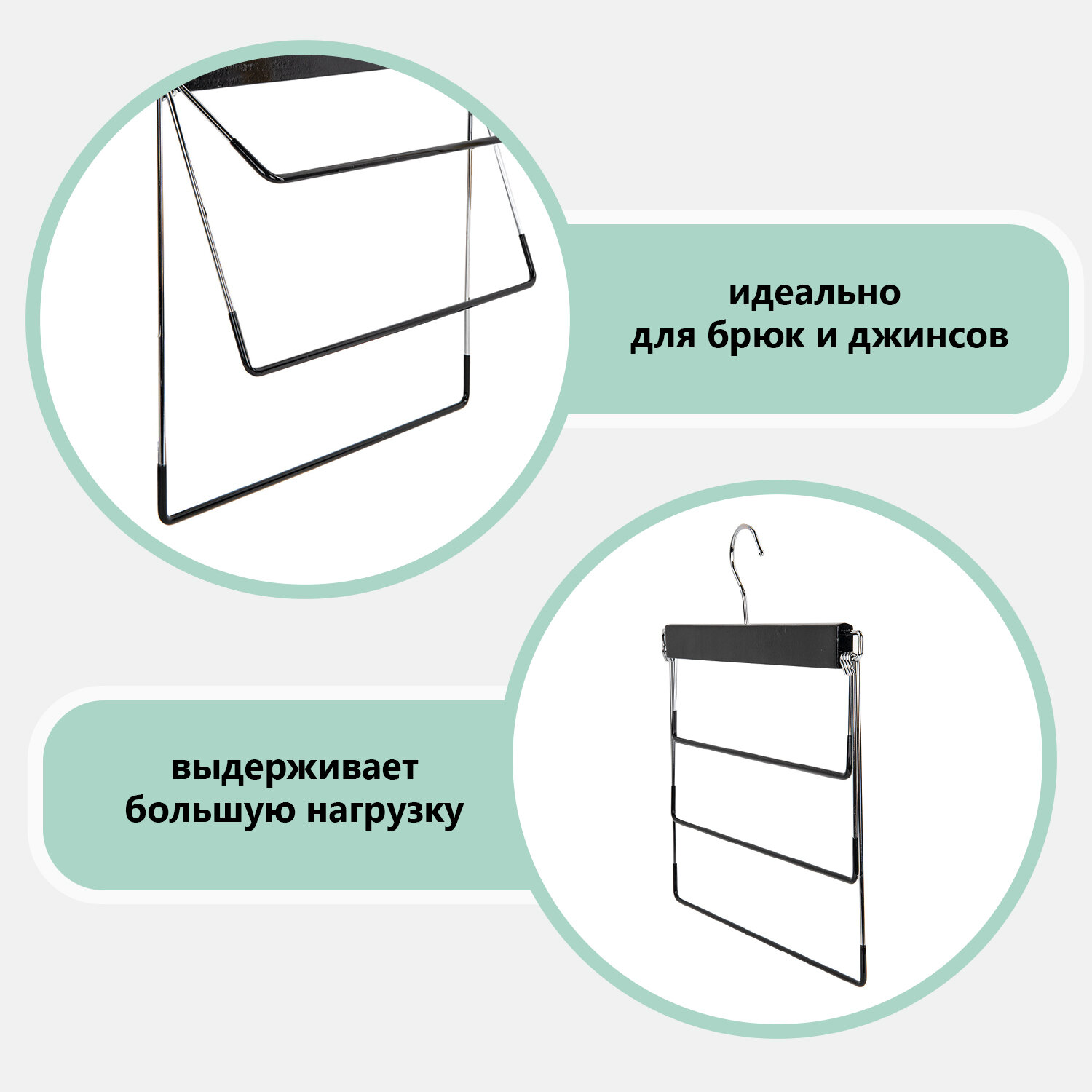 Данная вешалка BRABIX с ПВХ-покрытием идеальна для брюк и джинс. Имеет 3 уровня. Обеспечивает удобство и экономию пространства Вашего шкафа или гардеробной. Идеальна для небольших шкафов, фактически заменяет 3 вешалки, но при этом занимает меньший объем.
