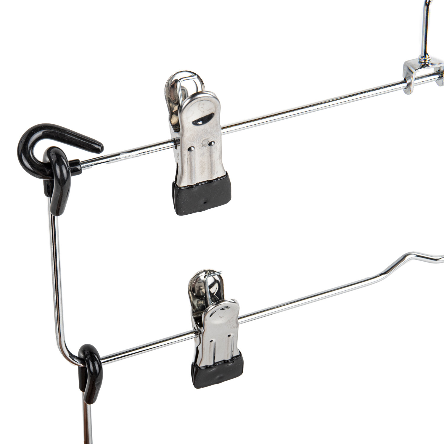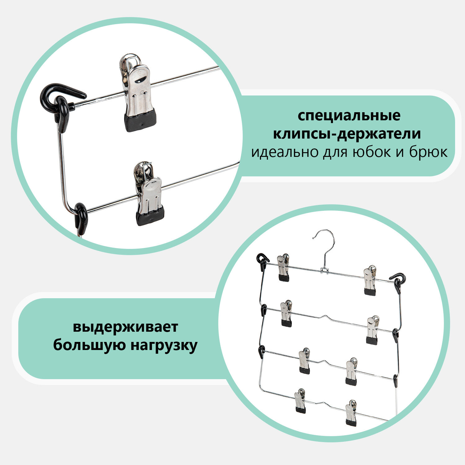 Вешалка изготовлена из металла. Предназначена для бережного хранения одежды. Долговечная и прочная. Эстетична, отлично вписывается в общий интерьер гардеробной.Универсальная вешалка с клипсами, подойдет под любой тип одежды и размер.