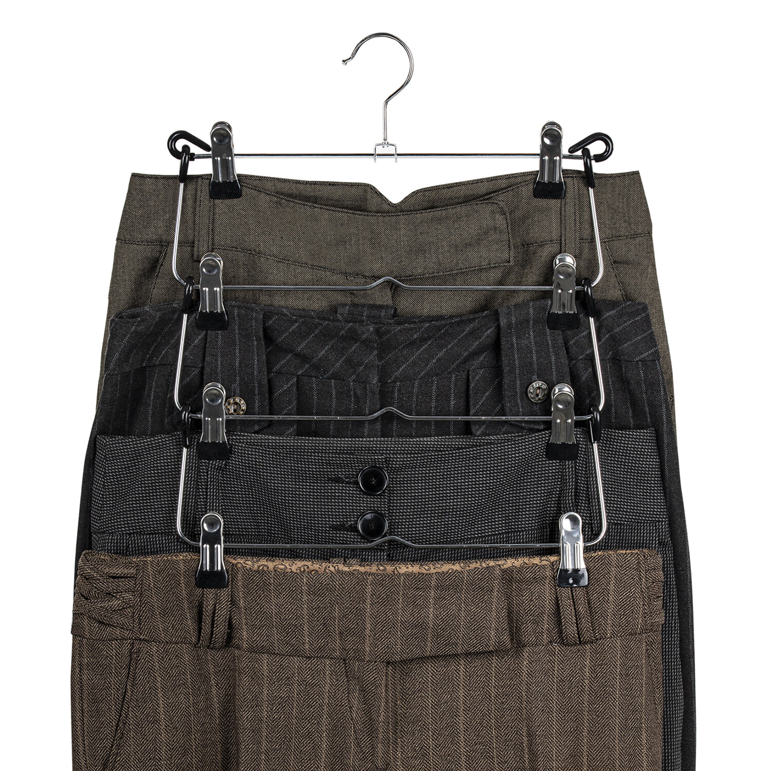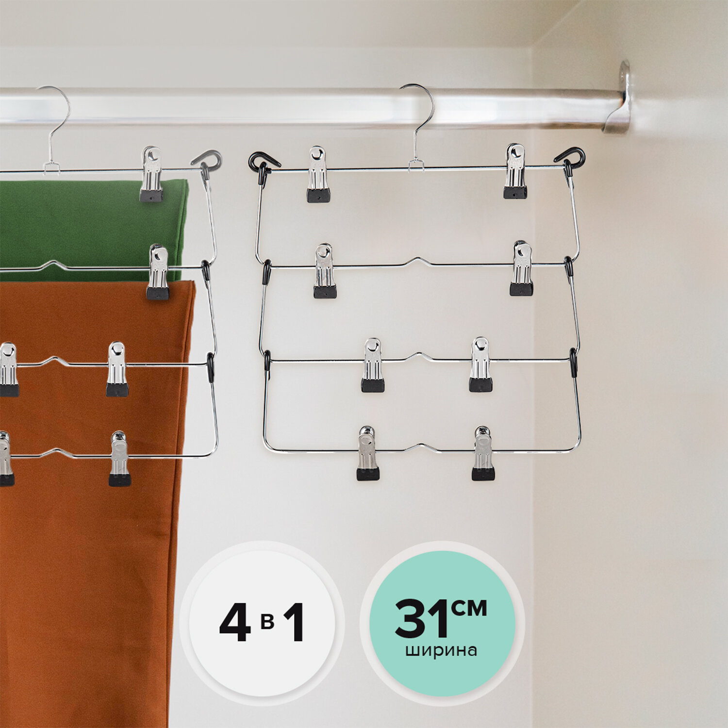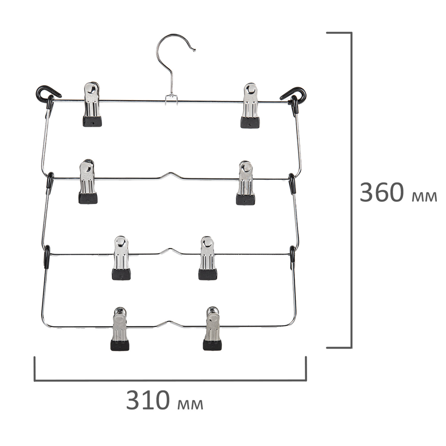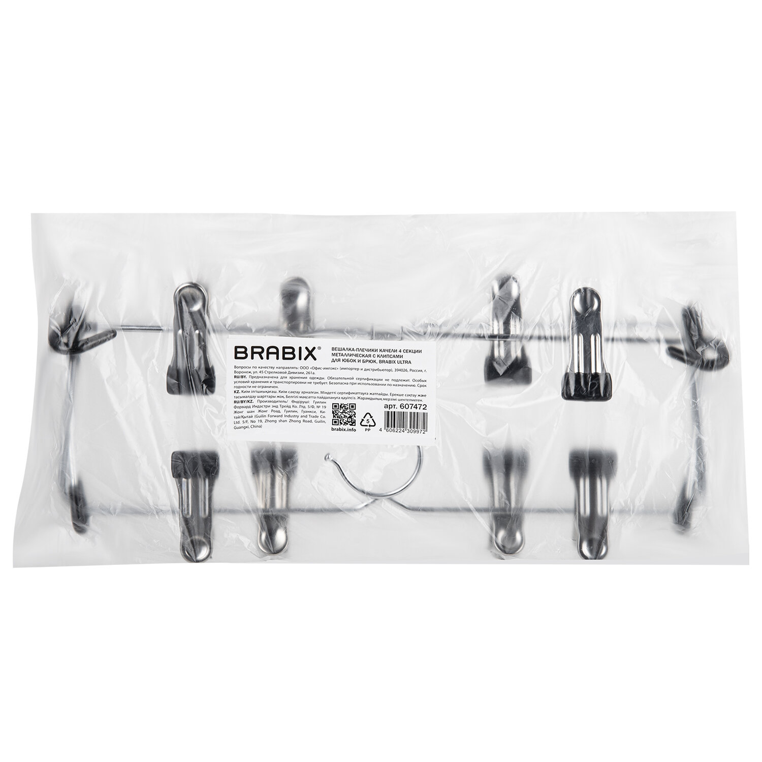 Вешалка-плечики BRABIX для одежды с клипсами для юбок и брюк. Имеет 4 уровня, что обеспечивает удобство и экономию пространства Вашего шкафа или гардеробной. Идеальна для небольших шкафов, фактически заменяет 4 вешалки, но при этом занимает меньший объем.