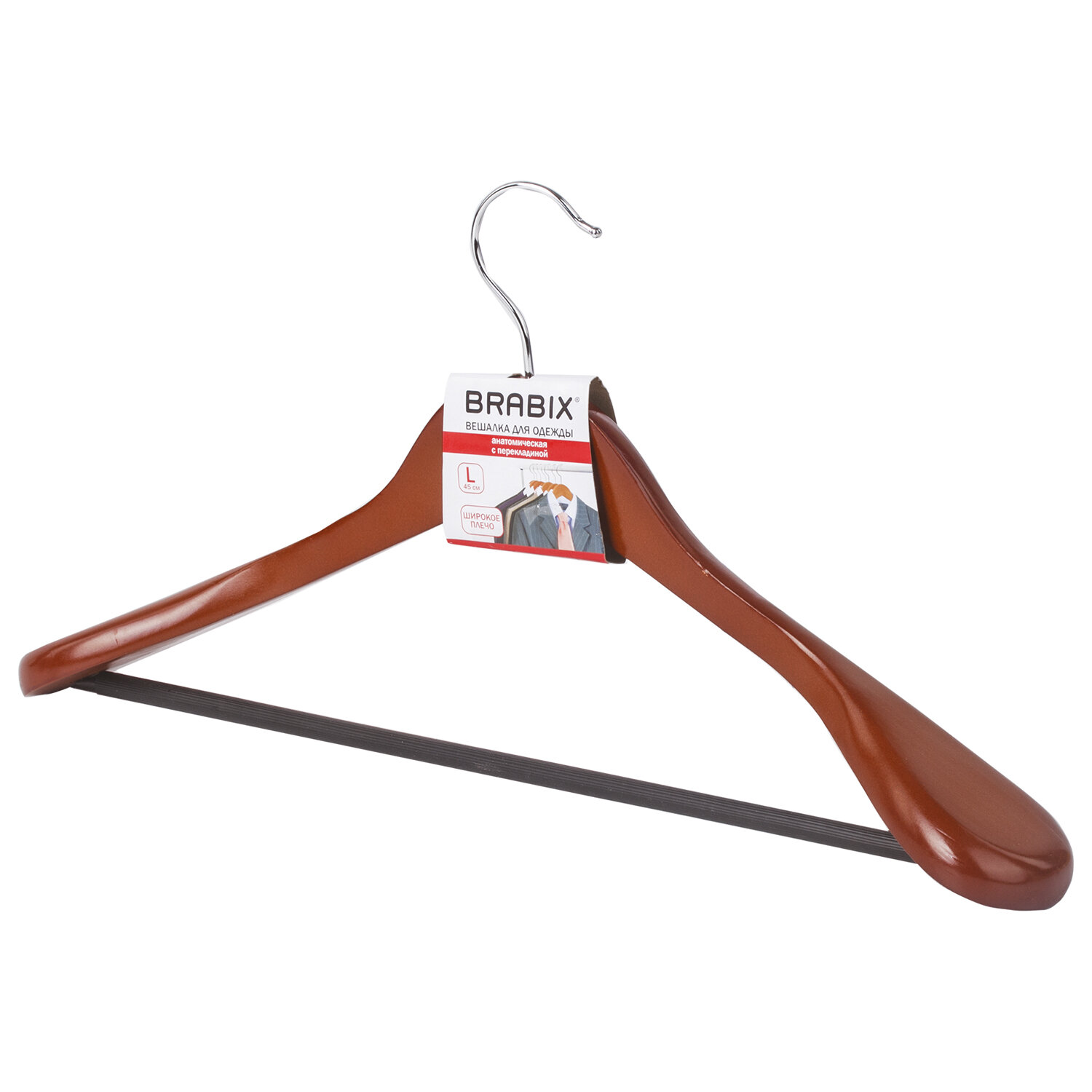 Вешалка-плечики BRABIX «Люкс» для одежды с перекладиной, анатомическая.