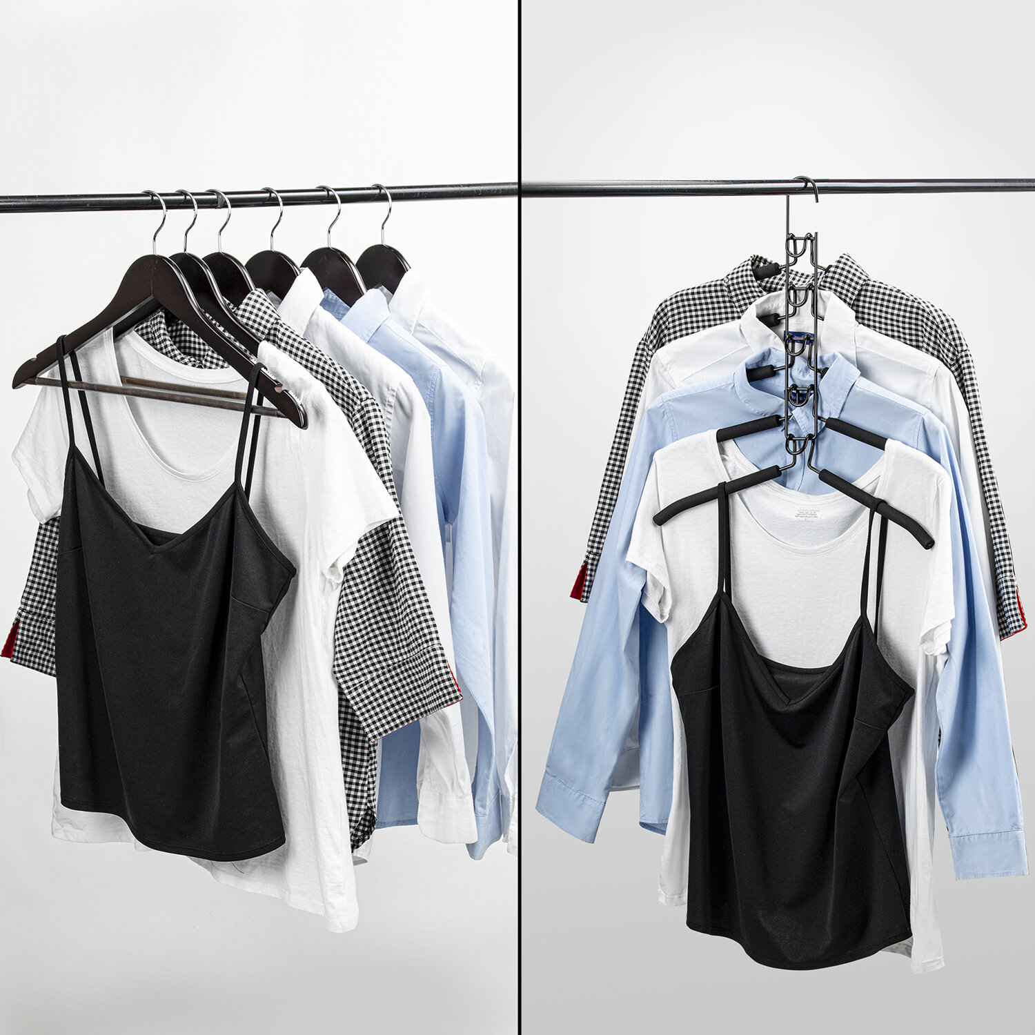 Вешалка-плечики с EVA-покрытием BRABIX ULTRA идеальны для рубашек и блузок. Обеспечивает удобство и экономию пространства шкафа или гардеробной. Идеальна для небольших шкафов, фактически заменяет 5 вешалок, но при этом занимает меньший объем.