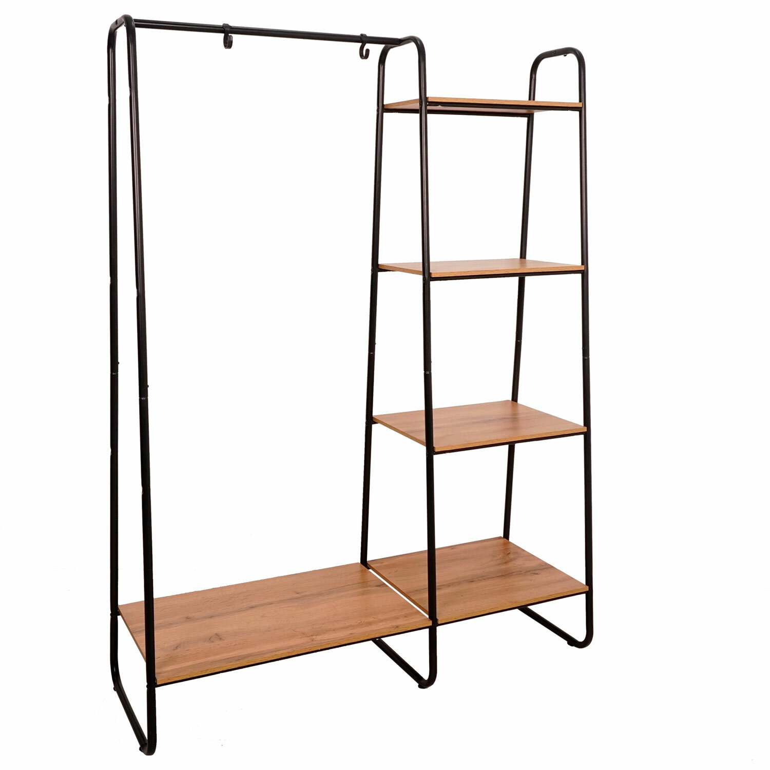 Вешалка-стеллаж «Скандинавия-1», 1470х1100х385 мм, 5 полок, металл/ЛДСП, черная/дуб, ГСС1 Ч