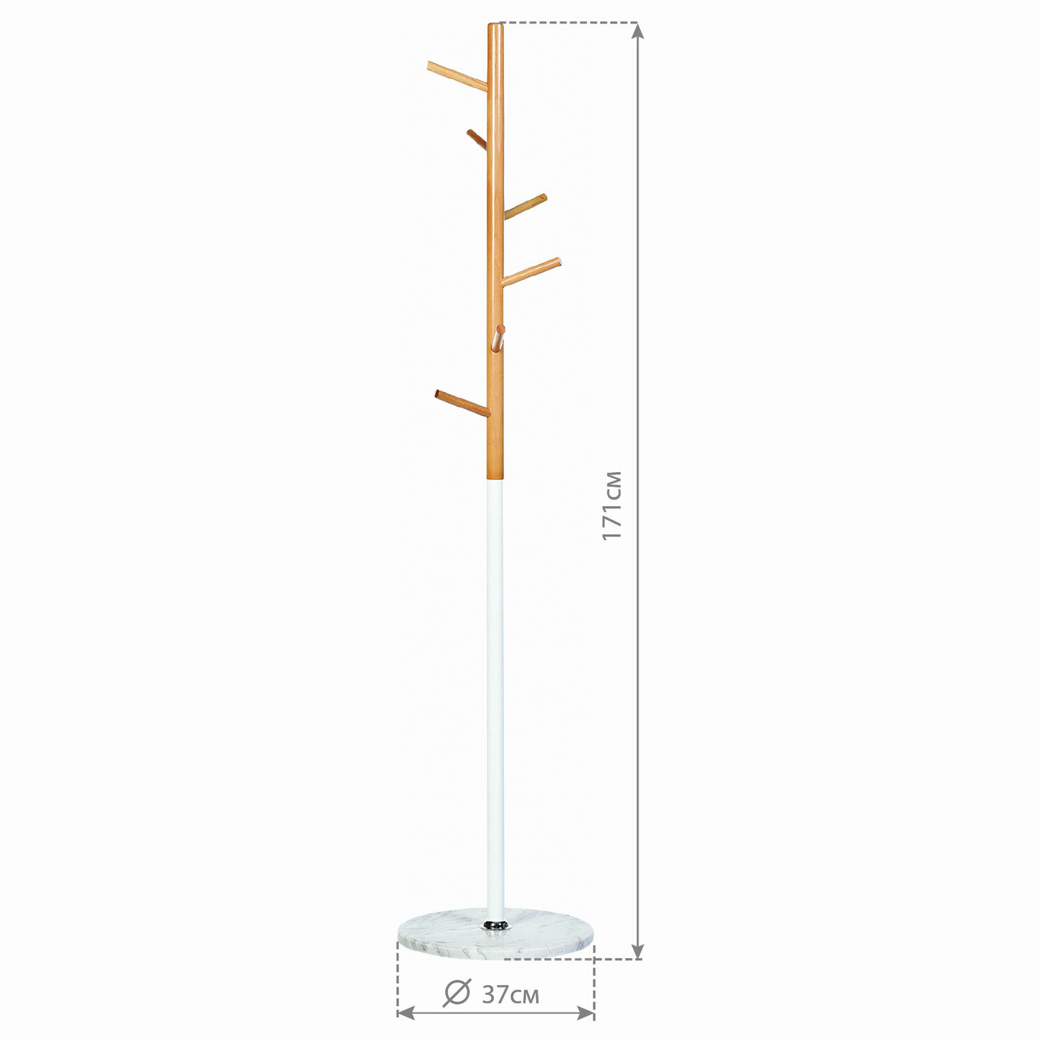 Верхняя часть вешалки-стойки выполнена из натурального бука, 6 крючков расположены «по спирали», что позволяет компактно разместить верхнюю одежду. Максимальная нагрузка на вешалку — 20 кг.Устойчивость данной модели обеспечивает основание из натурального мрамора.
