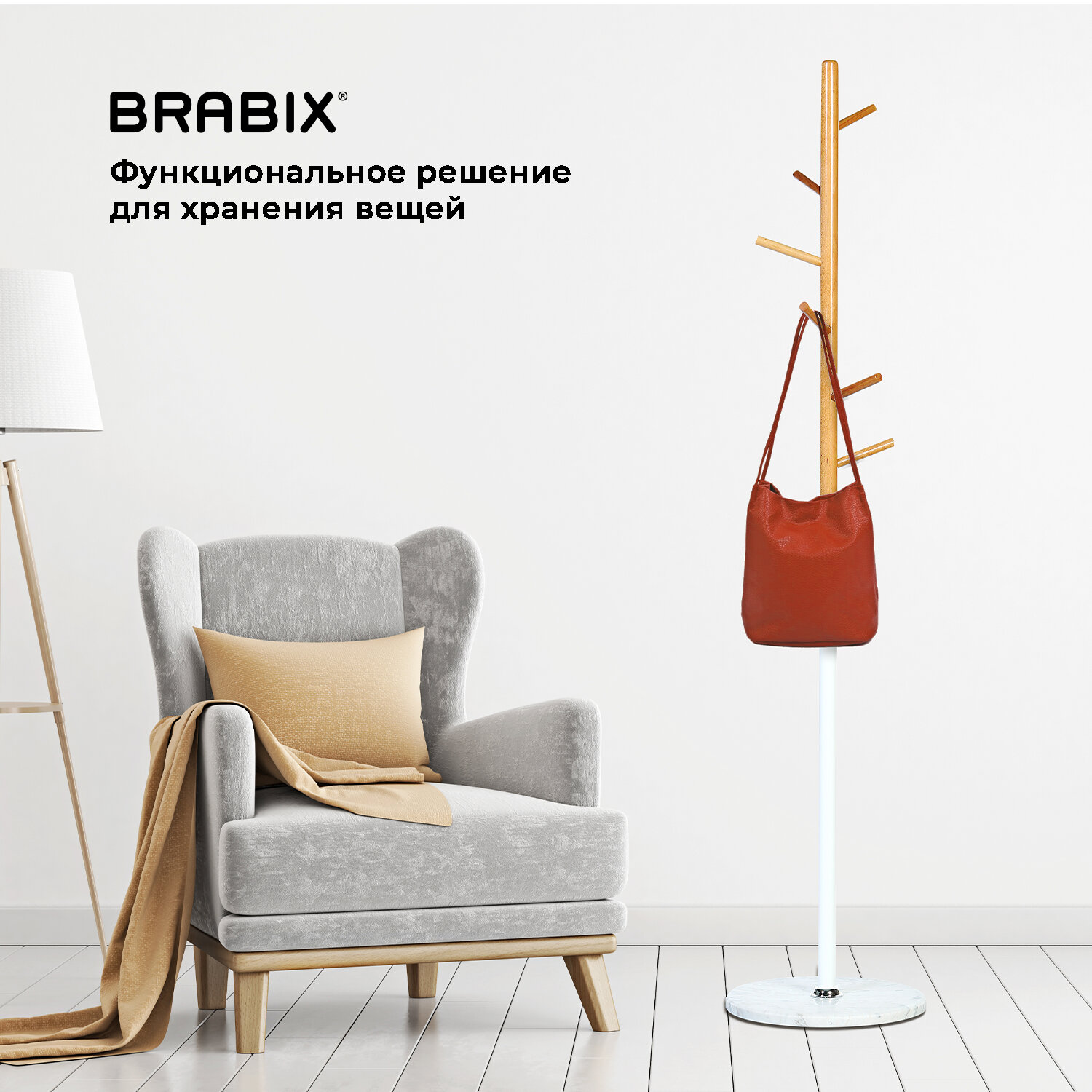 Современная вешалка BRABIX CR-1906 привлекает внимание не только своим оригинальным дизайном, но и качественными материалами. Сочетание натурального бука, мрамора и металла подойдет для дома, офиса и других общественных учреждений.