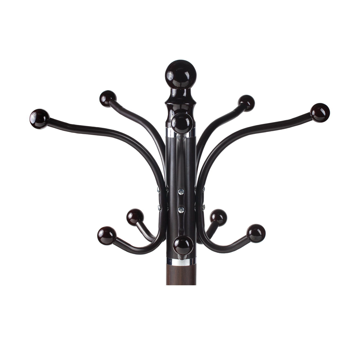 Конструкция выполнена в виде металлической стойки высотой 1,78 м. Диаметр трубы — 50 мм, толщина металла — 0,8 мм. Покрытие — ПВХ плёнка с текстурой. Вверху расположены 5 крючков для верхней одежды и головных уборов, в средней части — 4 дополнительных крючка для зонтов и сумок. Утяжеленное мраморное основание диаметром 360 мм обеспечит устойчивость даже при полной загрузке. Комплект поставляется в разобранном виде.