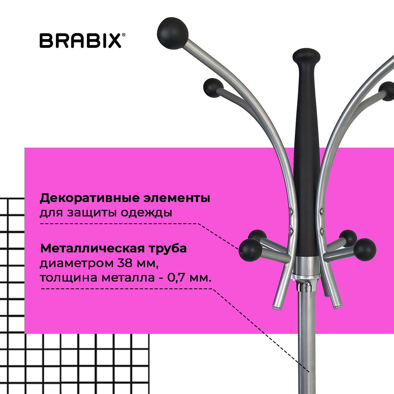 Напольная вешалка-стойка BRABIX «CR-848» с прочными металлическими крючками для верхней одежды и головных уборов и стойкой для зонтов — функциональное решение для хранения вещей в офисе и дома.
