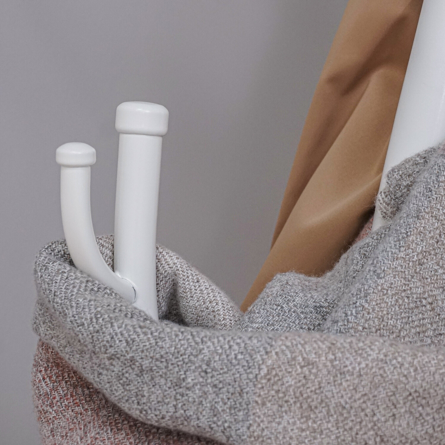 Стойка вешалки выполнена из металла с полимерным покрытием, что обеспечивает стойкость к механическим воздействиям.Устойчивое металлическое основание позволяет вешалке не «заваливаться» под весом одежды.Пятнадцать крючков с защитными колпачками.Допустимая нагрузка на крючок – до 5 кг.Общая нагрузка на вешалку – до 45 кг.Изделие поставляется в разобранном виде в картонной коробке с ручкой.Простая сборка согласно инструкции, шестигранный ключ в комплекте.