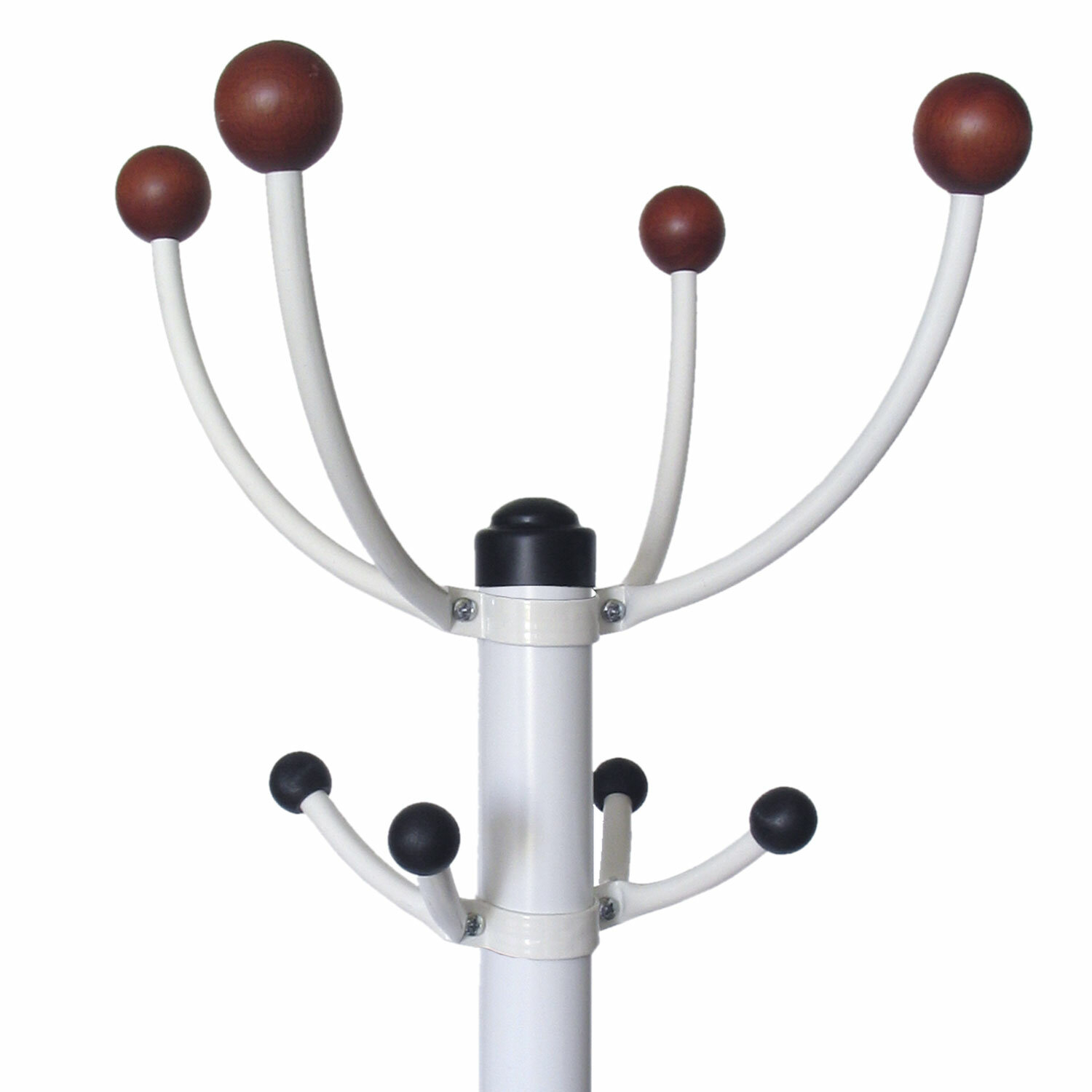 Стойка вешалки выполнена из оцинкованной стали с полимерным покрытием, что обеспечивает стойкость к механическим воздействиям.Устойчивое металлическое основание диаметром 395 мм позволяет вешалке «не заваливаться» под весом одежды.5 крючков для головных уборов и верхней одежды, держатель для зонтов.Декоративные наконечники из натурального дерева в форме шаров.Элементы вешалки покрыты защитной пленкой.Поставляется в разобранном виде в плоской картонной коробке.