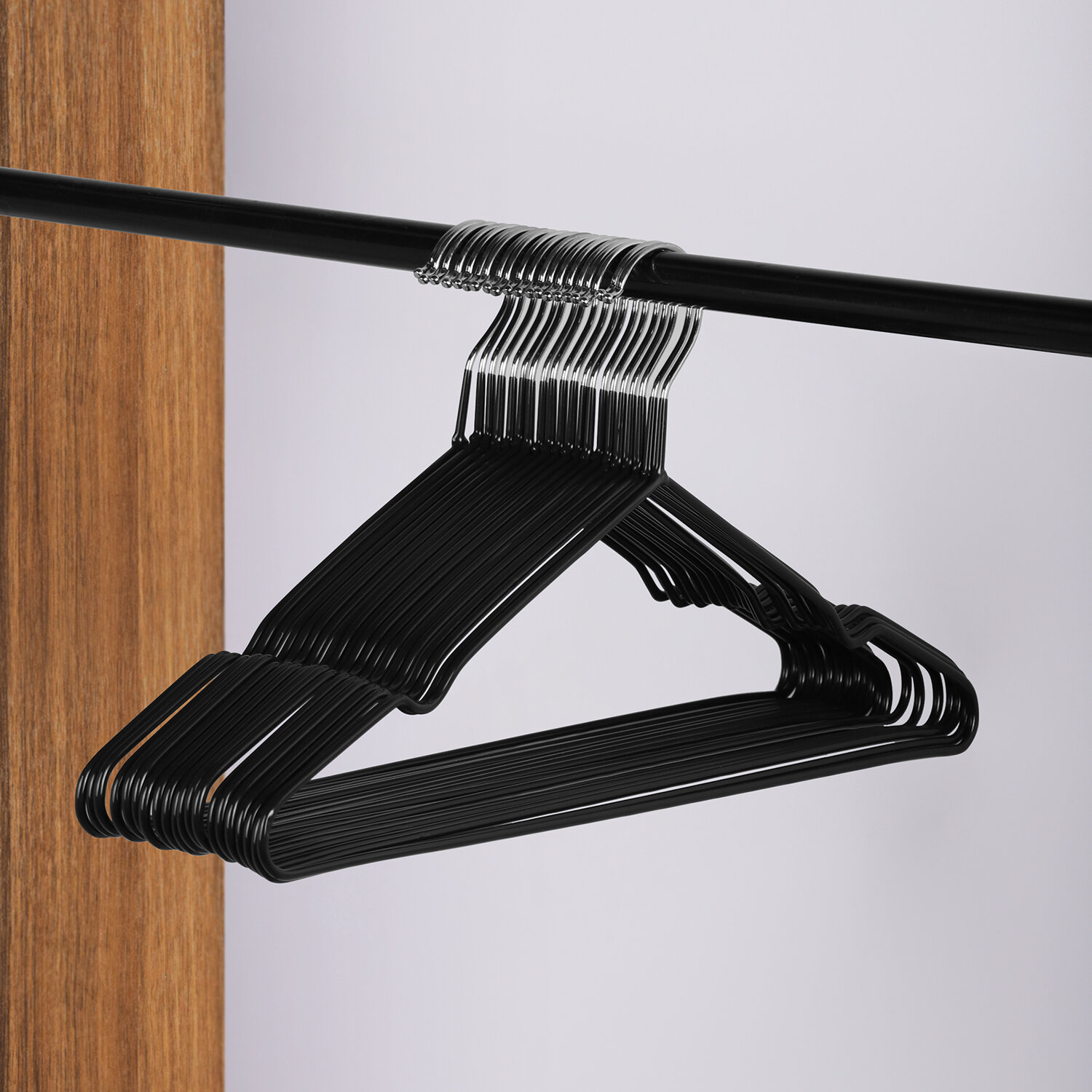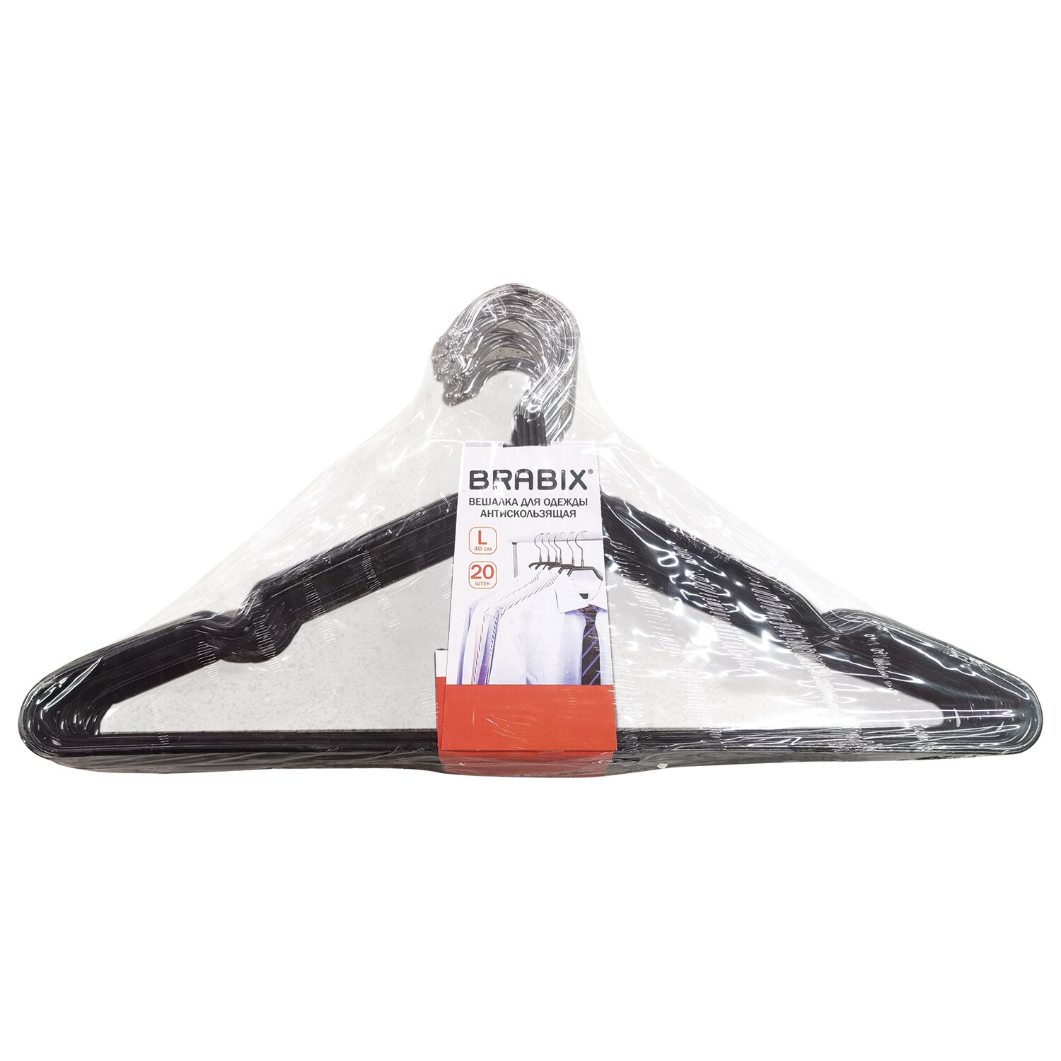 Набор из 20 прочных черных металлических вешалок BRABIX для одежды со специальным резиновым покрытием. Такое покрытие плечиков для одежды не дает одежде скользить по вешалке.