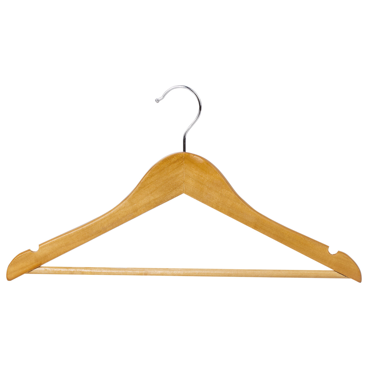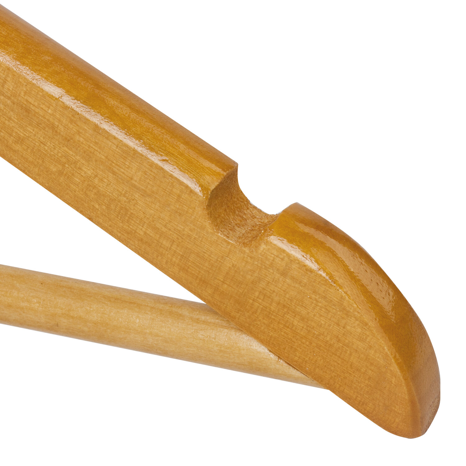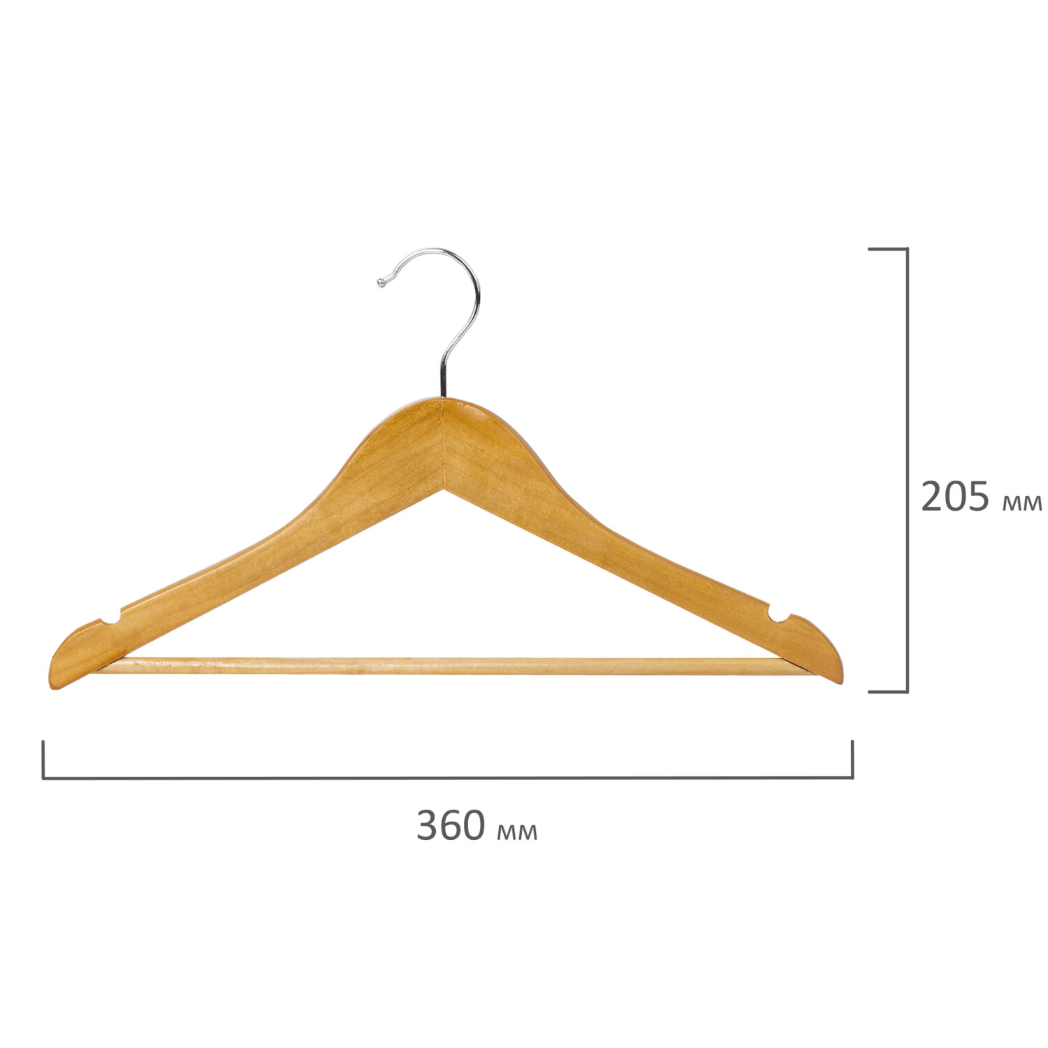 Вешалки изготовлены из натурального дерева. Лакированные, с невыкручивающимся крючком. Предназначены для бережного хранения одежды. Обладают долговечностью и прочностью, не прогибаются под тяжелой верхней одеждой. Эстетичны, отлично вписываются в общий интерьер гардеробной. Размер модели составляет 36 см. 5 штук в комплекте.