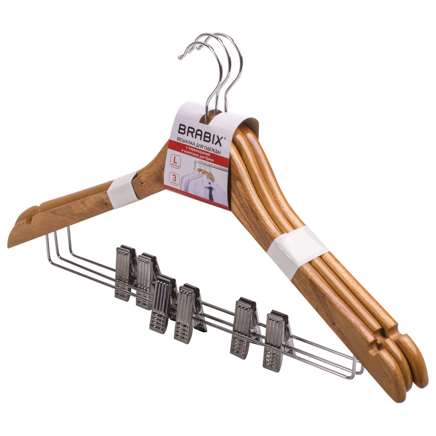 Вешалки-плечики BRABIX «Стандарт» для одежды с клипсами для брюк.