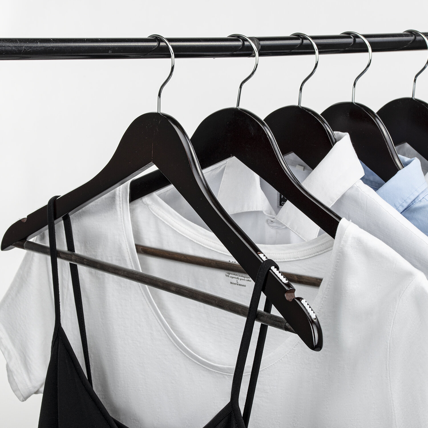 Вешалки-плечики BRABIX с перекладиной для одежды и антискользящими плечиками с рифленой силиконовой поверхностью, которая исключает сползание одежды. Выполнены из качественной древесины благородного темного окраса. Стильные и очень удобные.