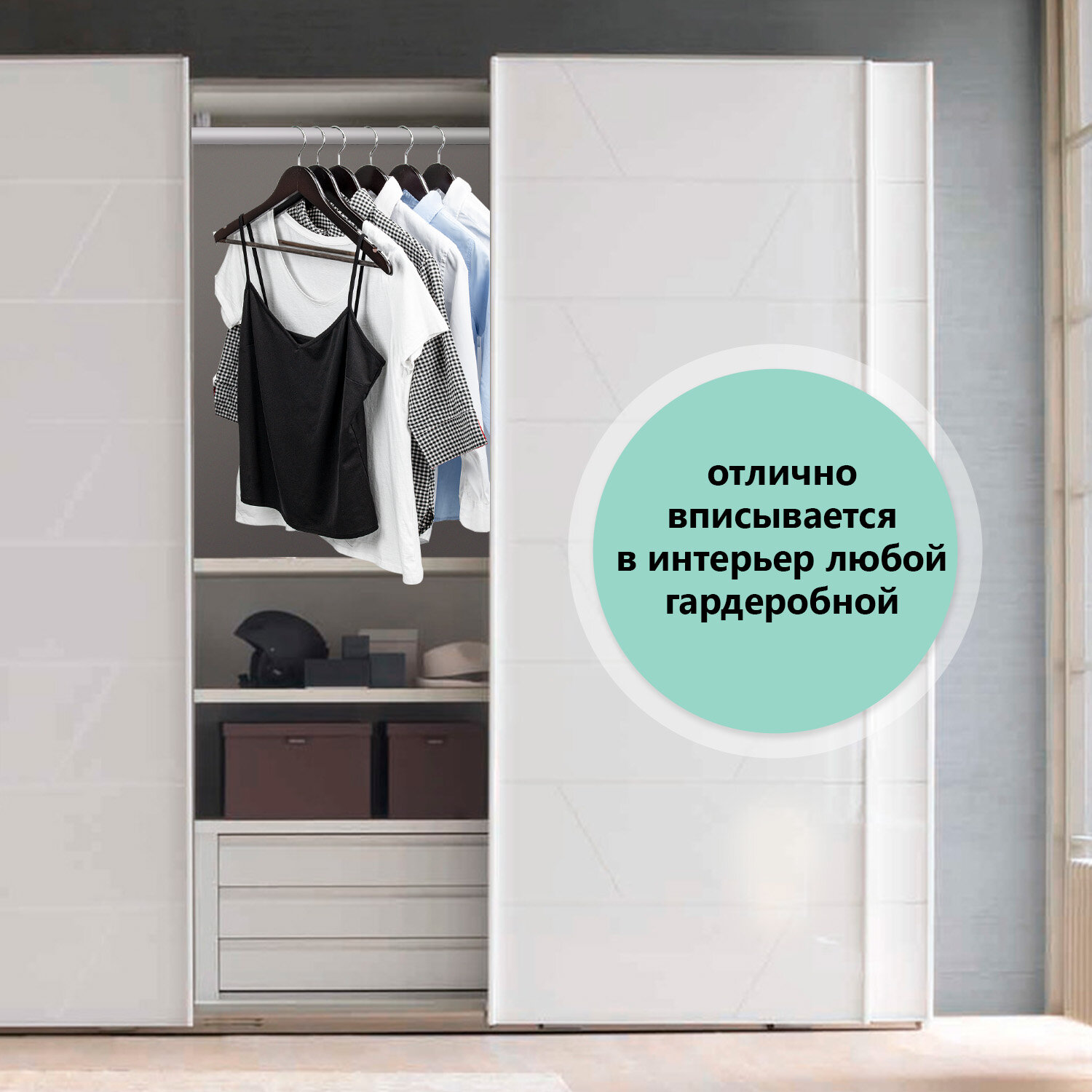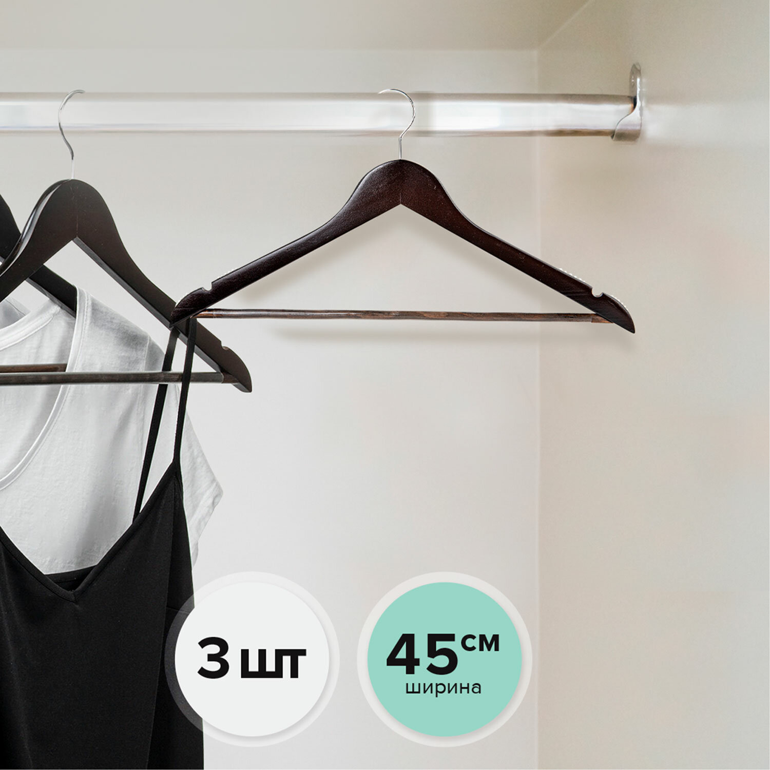 Вешалки изготовлены из натурального дерева. Лакированные, с невыкручивающимся крючком. Предназначены для бережного хранения одежды. Долговечные и прочные, не прогибаются под тяжелой верхней одеждой. Эстетичны, отлично вписываются в общий интерьер гардеробной. Размер модели составляет 45 см. 3 штуки в комплекте.