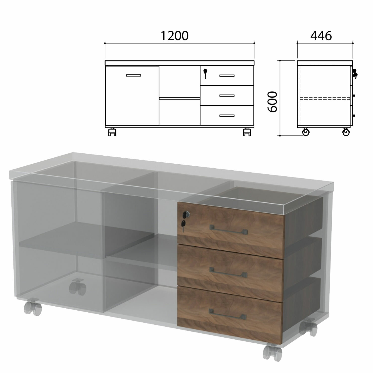 Ящики предназначены для формирования комплектов тумб-креденций (код 980364, 980365), совместно с каркасом — код 640414 и фасадом — код 640415.
