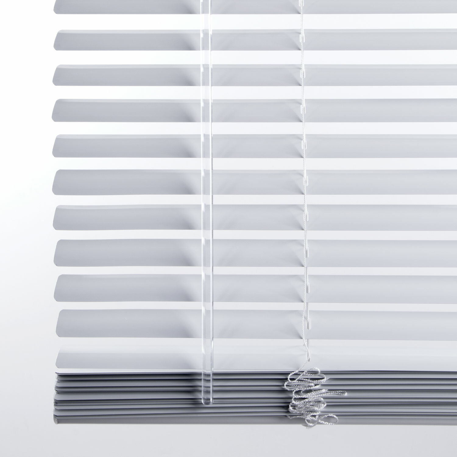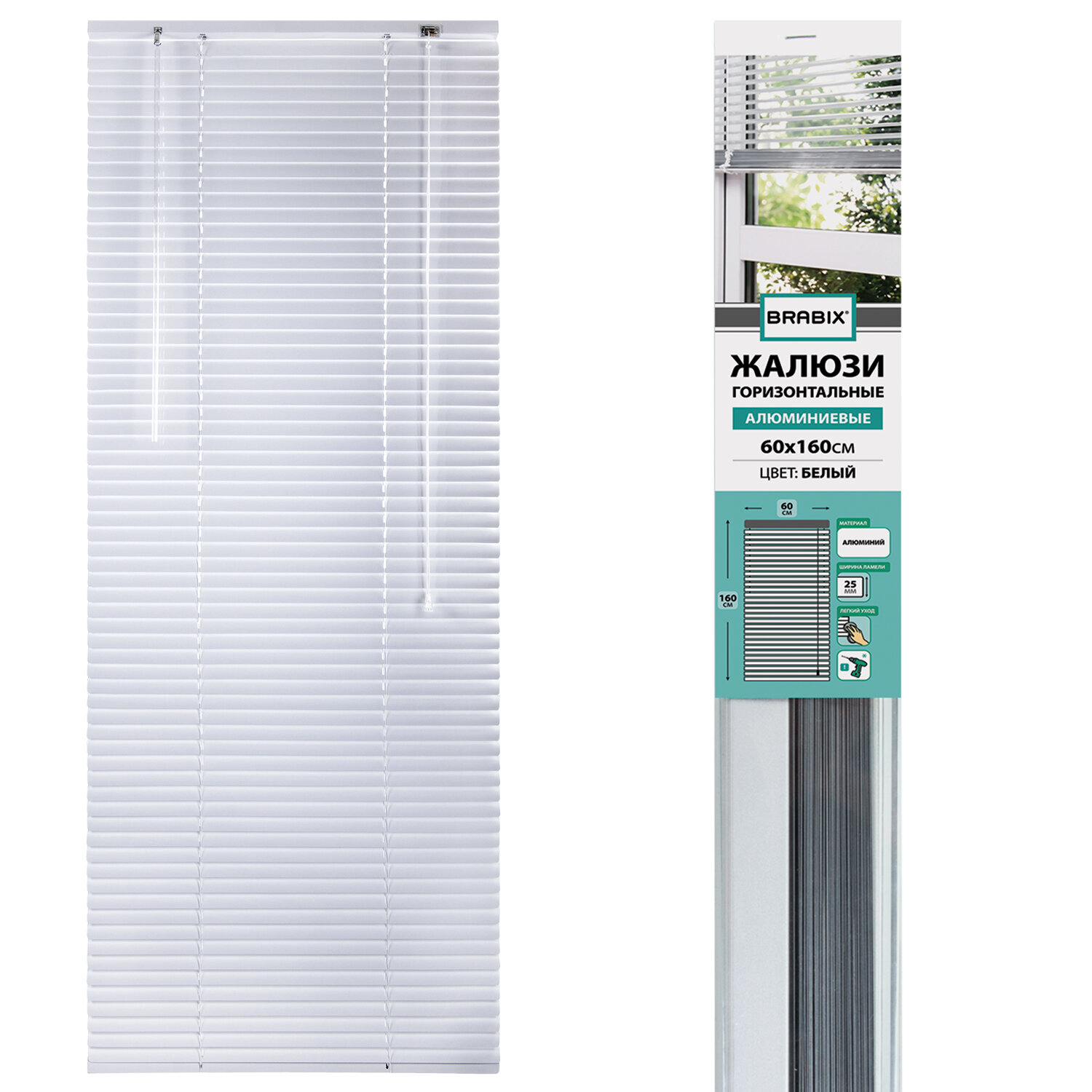 Изготовлены из легкого и прочного алюминия. Материал имеет большой срок службы, не выцветает под воздействием солнечных лучей, не деформируется и не накапливает статическое электричество. Жалюзи легко чистить – алюминий прекрасно переносит влажную уборку. Не имеют запаха и не выделяют вредных веществ при нагревании. Могут использоваться в спальнях и детских комнатах. Левой поворотной ручкой осуществляется управление световым потоком. Длина ручки – 60 см.Регулировка высоты осуществляется с помощью шнура управления справа. Также есть возможность убрать лишние ламели.Последней прикреплена планка с утяжелителем для выравнивания расположения.Жалюзи выполнены в белом цвете.Размер – 60х160 см. Ширина ламелей – 25 мм.