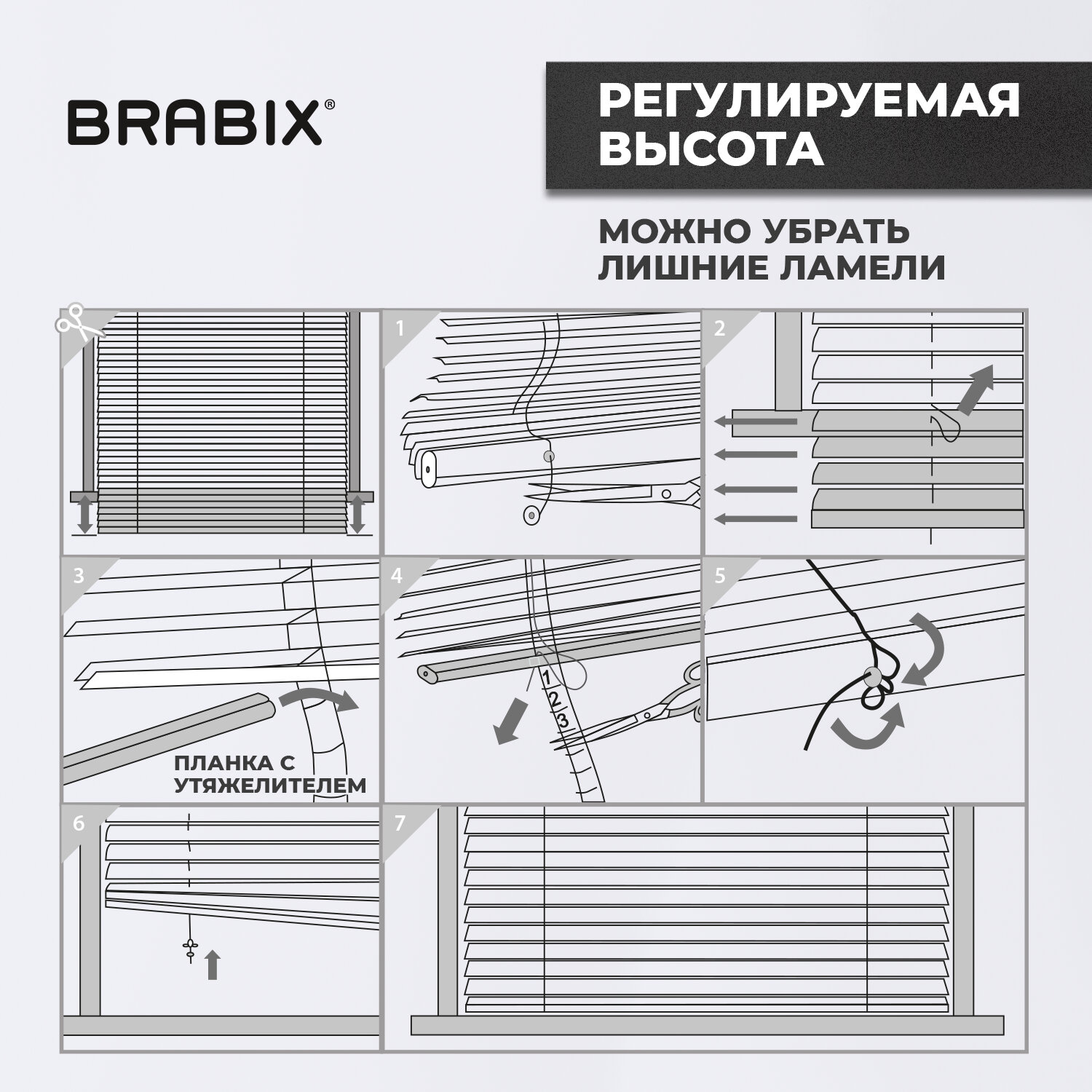 Горизонтальные жалюзи BRABIX – это современное стильное и одновременно классическое решение для офисных и служебных помещений, также отлично впишутся в обстановку жилого дома и квартиры. Служат для защиты от солнца и регулировки светового потока.