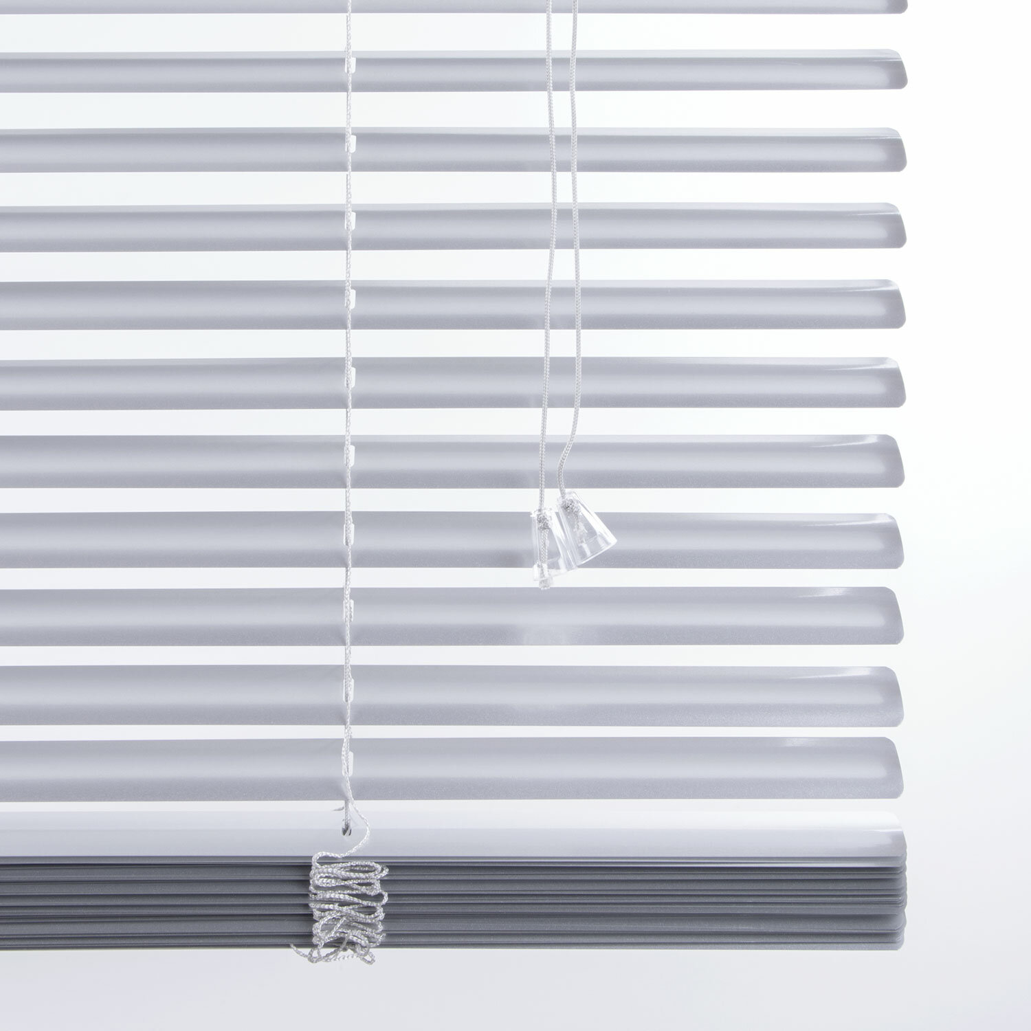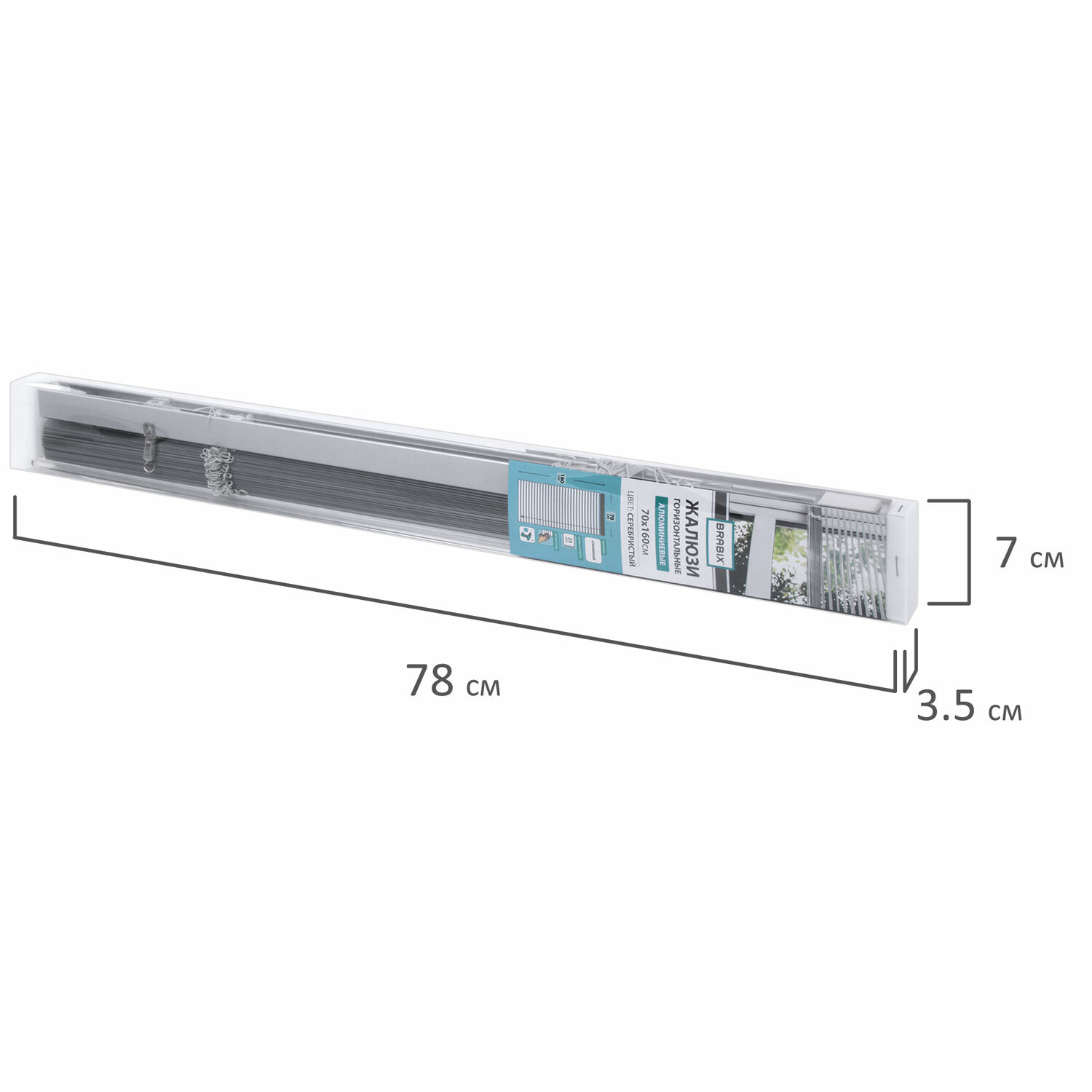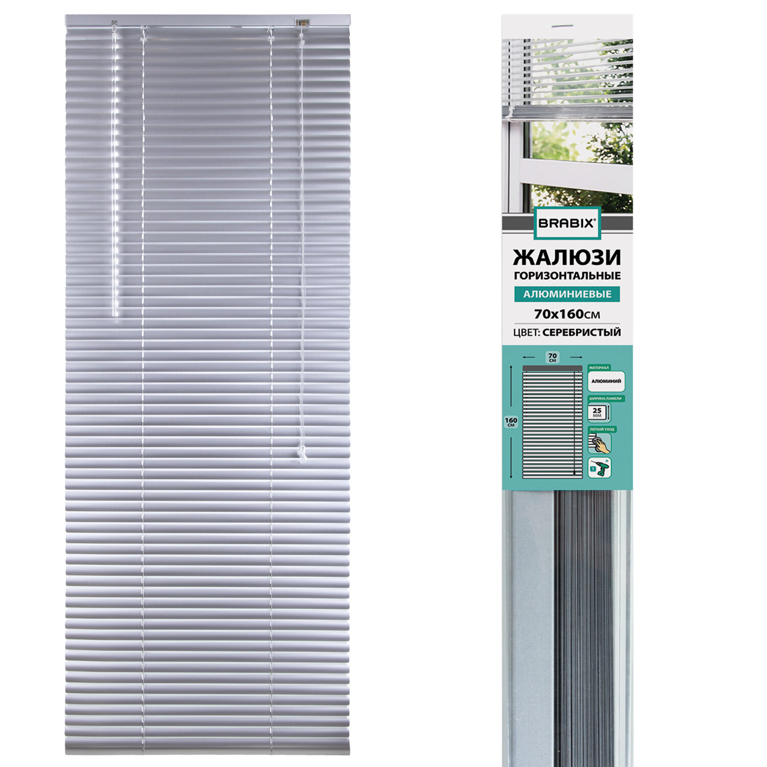 Изготовлены из легкого и прочного алюминия. Материал имеет большой срок службы, не выцветает под воздействием солнечных лучей, не деформируется и не накапливает статическое электричество. Жалюзи легко чистить – алюминий прекрасно переносит влажную уборку. Не имеют запаха и не выделяют вредных веществ при нагревании. Могут использоваться в спальнях и детских комнатах. Левой поворотной ручкой осуществляется управление световым потоком. Длина ручки – 60 см.Регулировка высоты осуществляется с помощью шнура управления справа. Также есть возможность убрать лишние ламели.Последней прикреплена планка с утяжелителем для выравнивания расположения.Жалюзи выполнены в серебристом цвете.Размер – 70х160 см. Ширина ламелей – 25 мм.