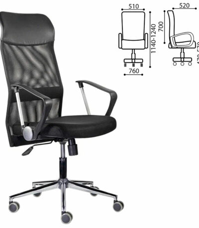 Кресло «Директ Лайт» МС-040, высокая спинка, с подлокотниками, хром, черное